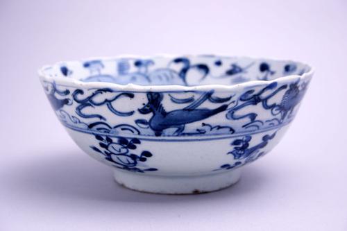 Delftse onderschotel gedecoreerd met rocailles en bl...