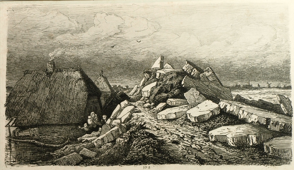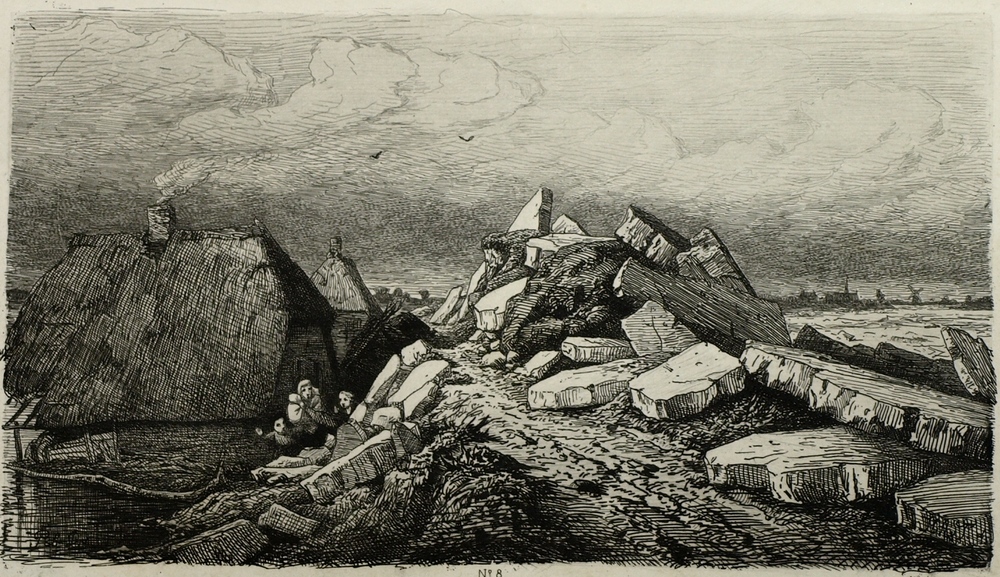 Gezicht op dijkdoorbraak Dreumelsedijk, 7 maart 1855...