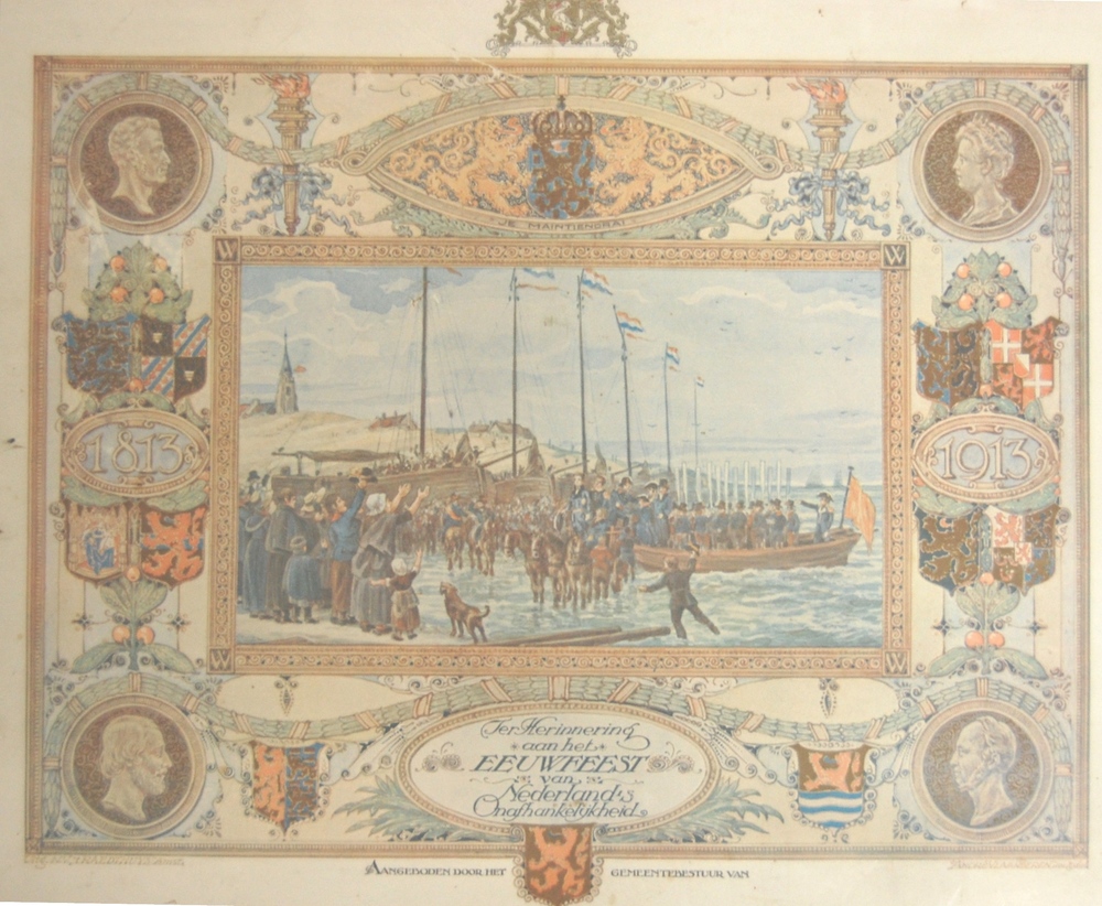 Kleurenprent ter gelegenheid van Onafhankelijkheidsh...