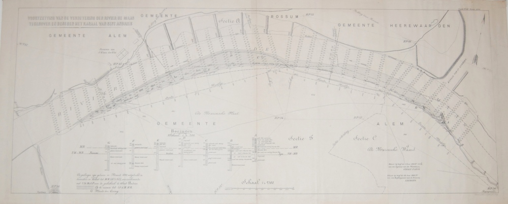 Tekening verbetering rivier De Maas bij Alem, Rossum...
