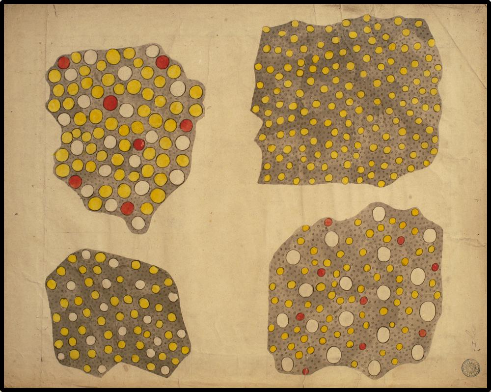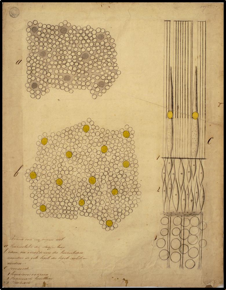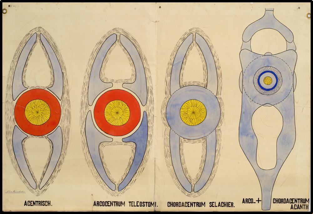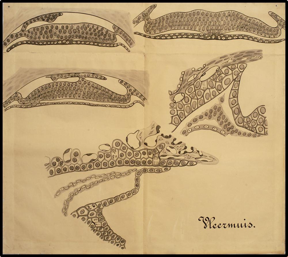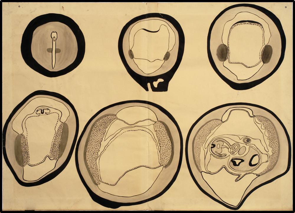 Onderwijsplaat van zes afbeeldingen van doorsneden d...