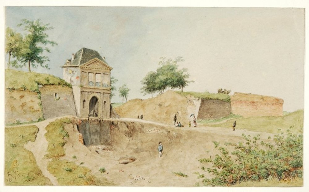 Gezicht vanaf het veld op de Molenpoort in Nijmegen,...