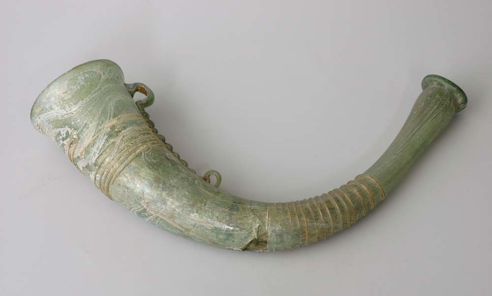 Drinkhoorn van lichtgroen glas uit de Romeinse tijd