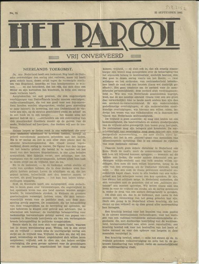 Het Parool, vrij onverveerd, No 23, 25 September 1941