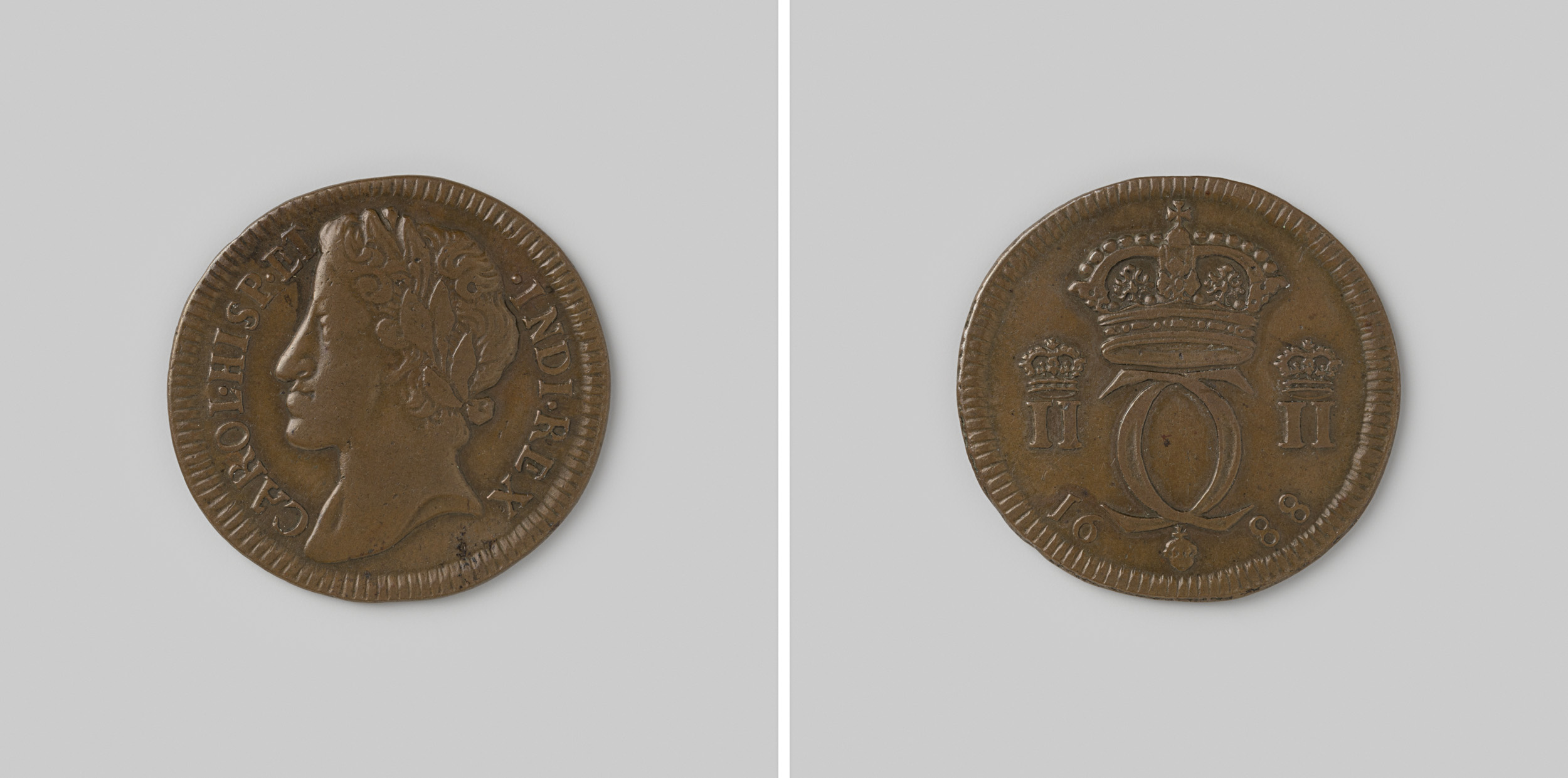 Rekenpenning uit Brussel op Koning Karel II 1688