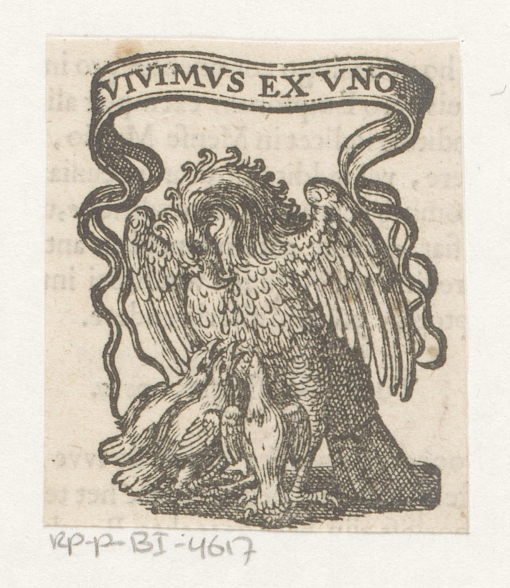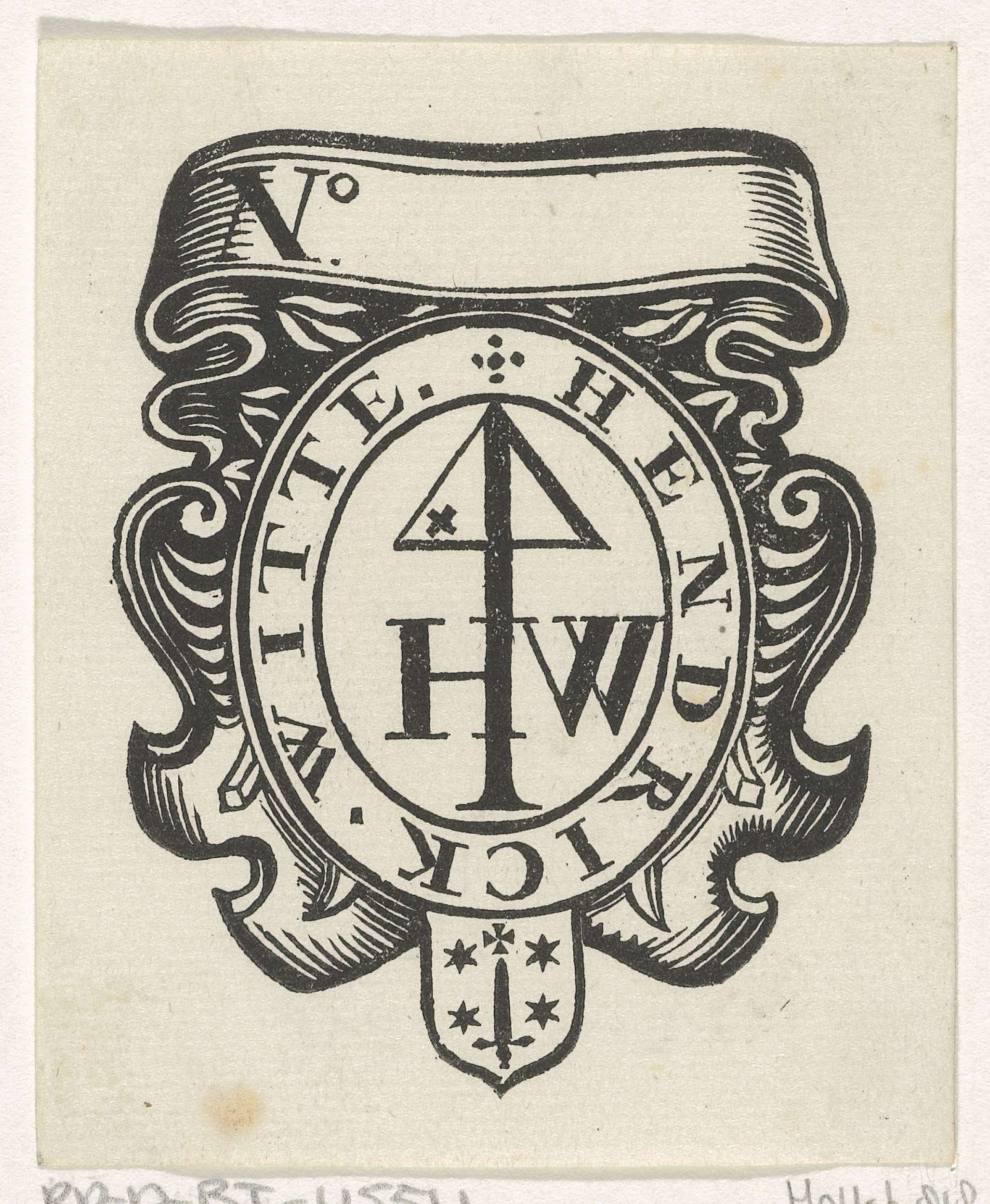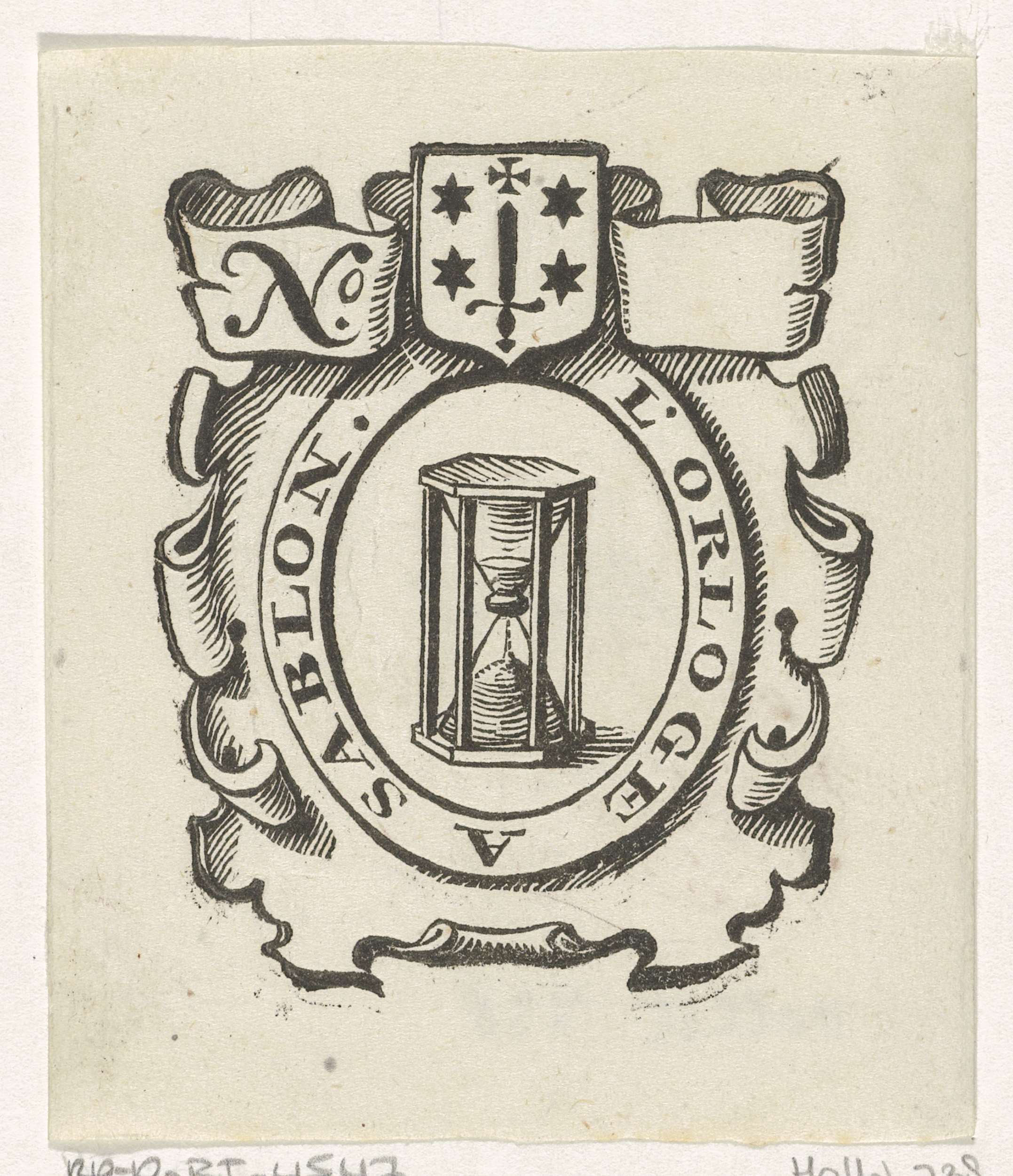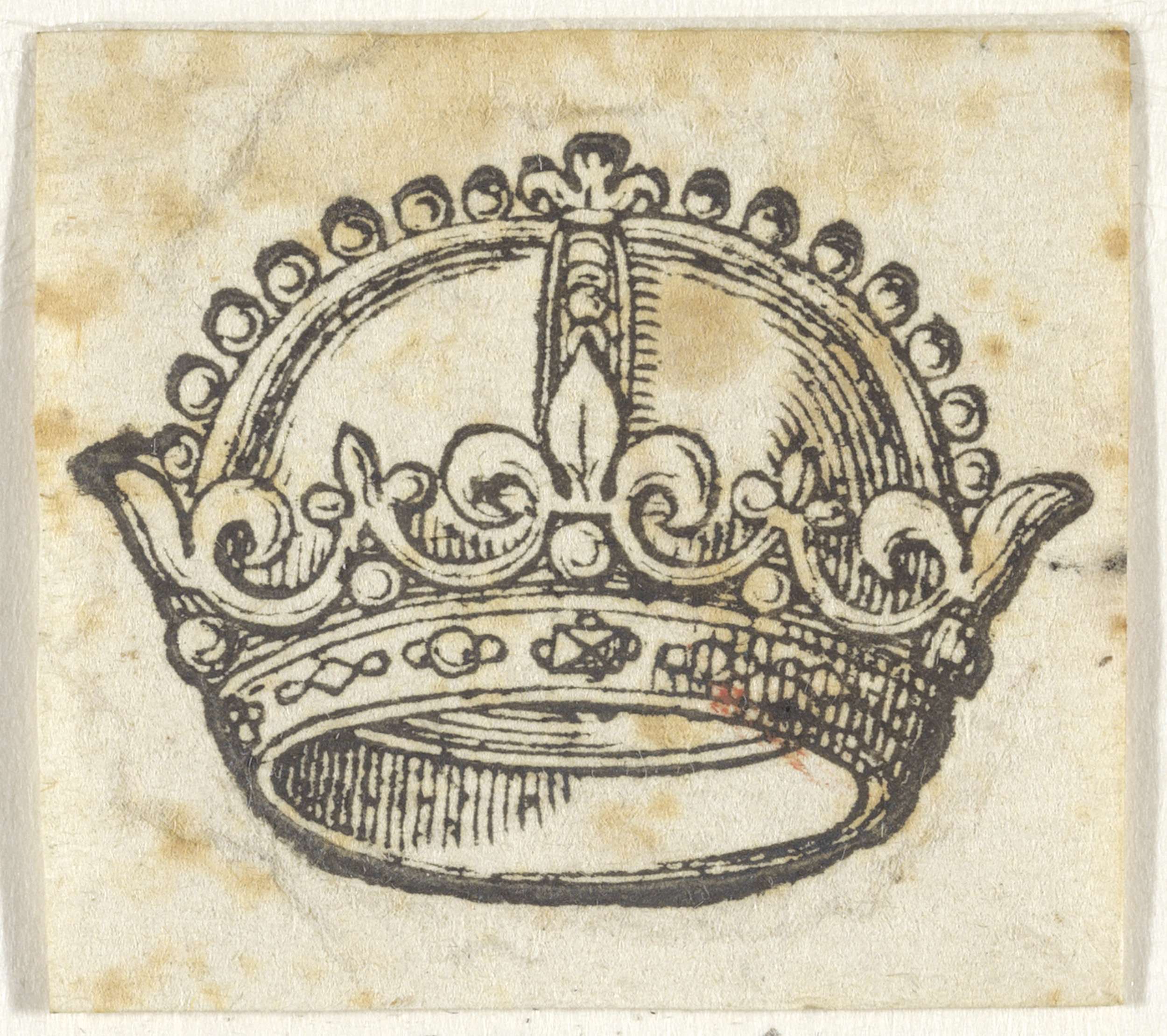Vignet met een wapenschild, een kroon, wapentuig en ...