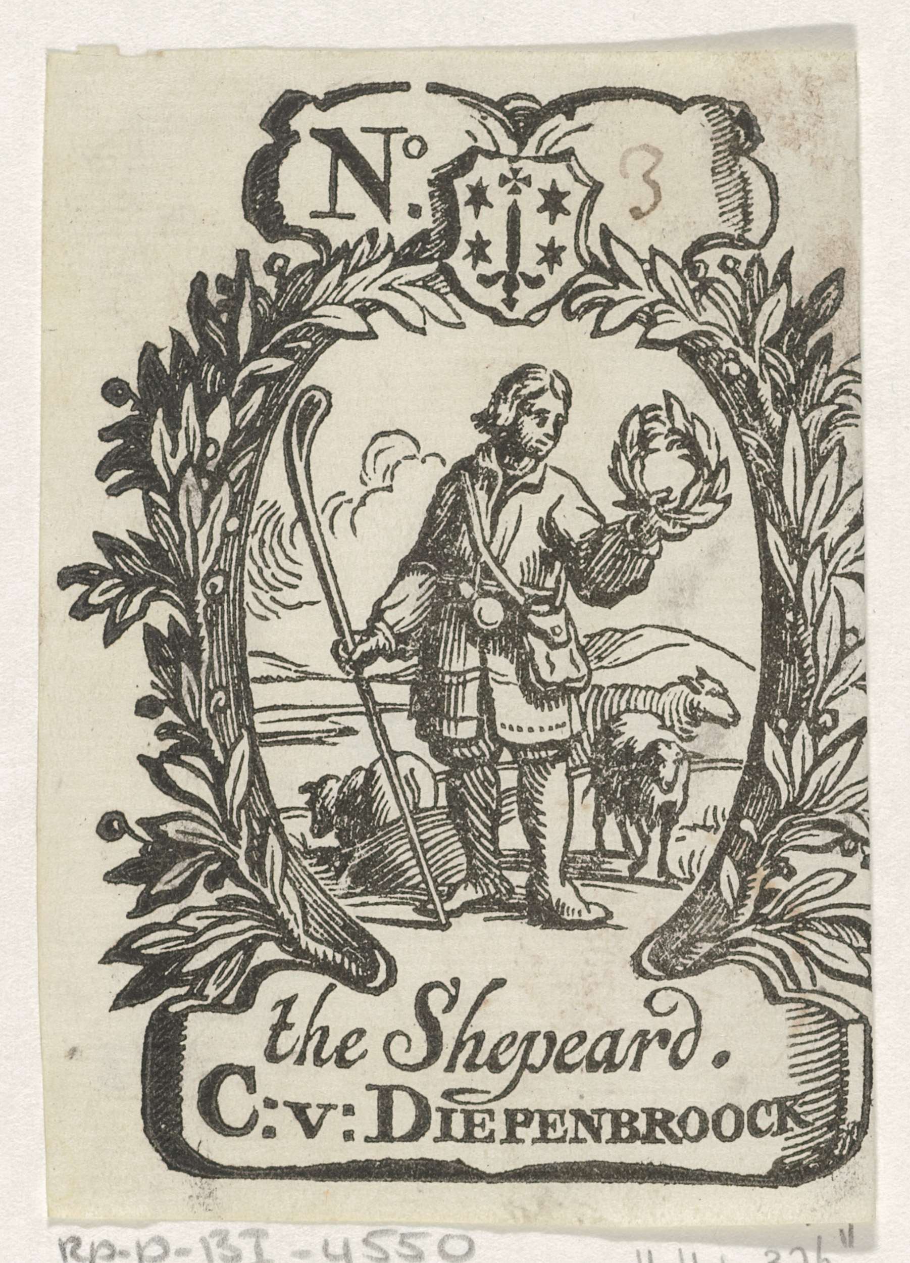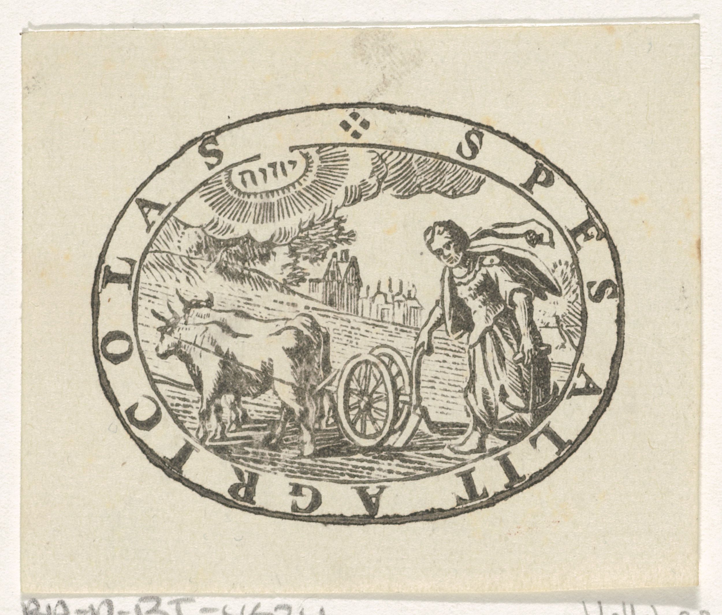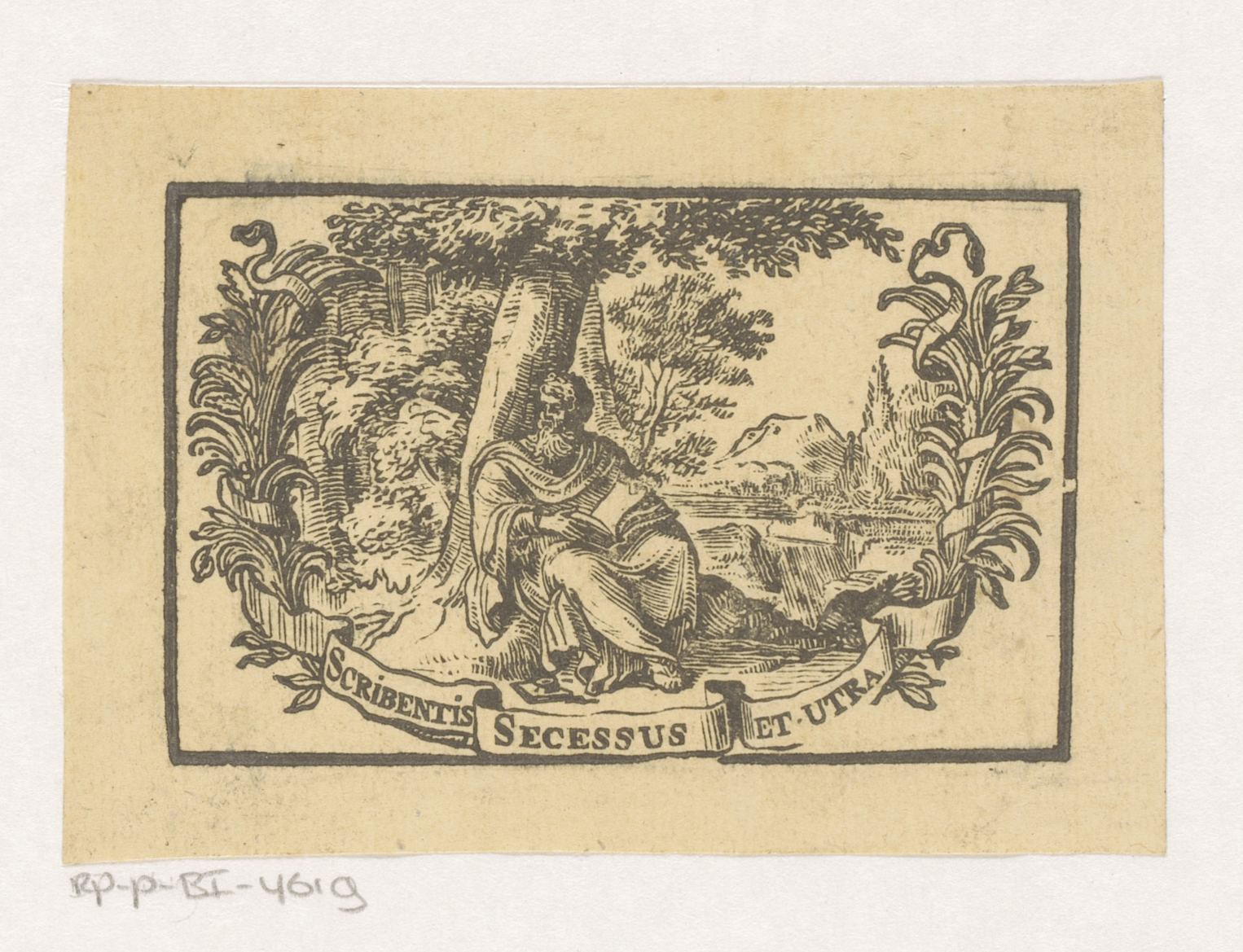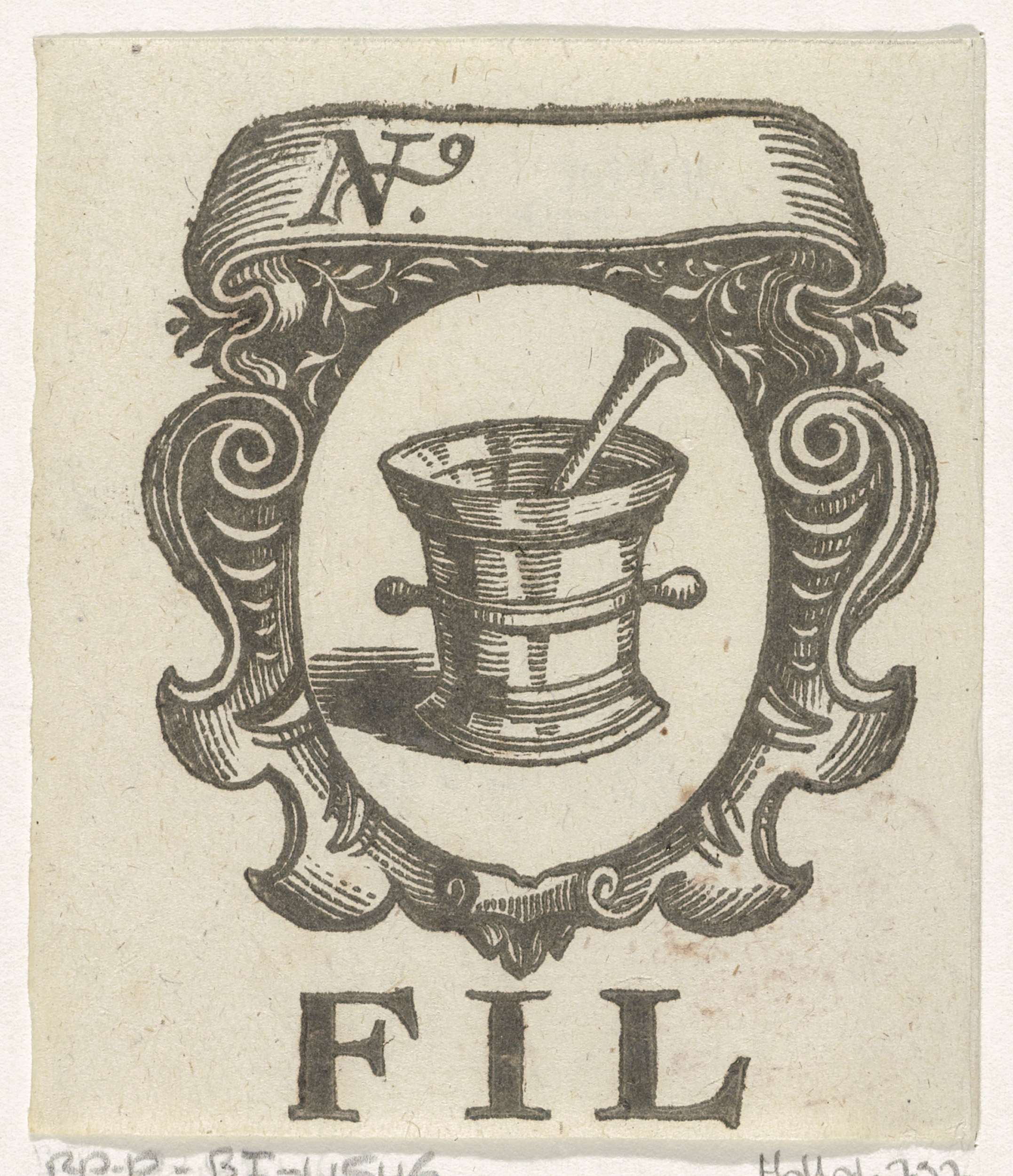 Vignet met een wapenschild, een kroon, wapentuig en ...