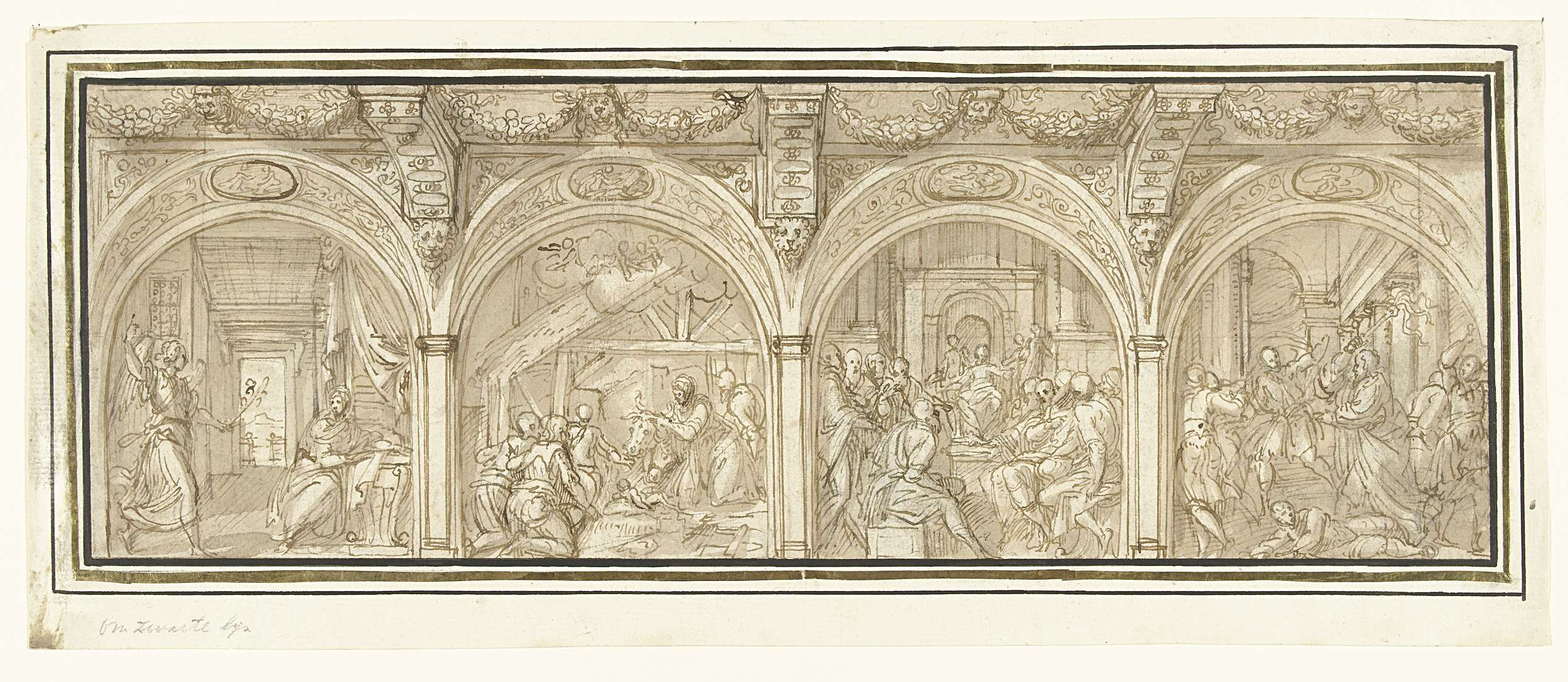 Ontwerp voor een muurdecoratie met vier voorstellingen