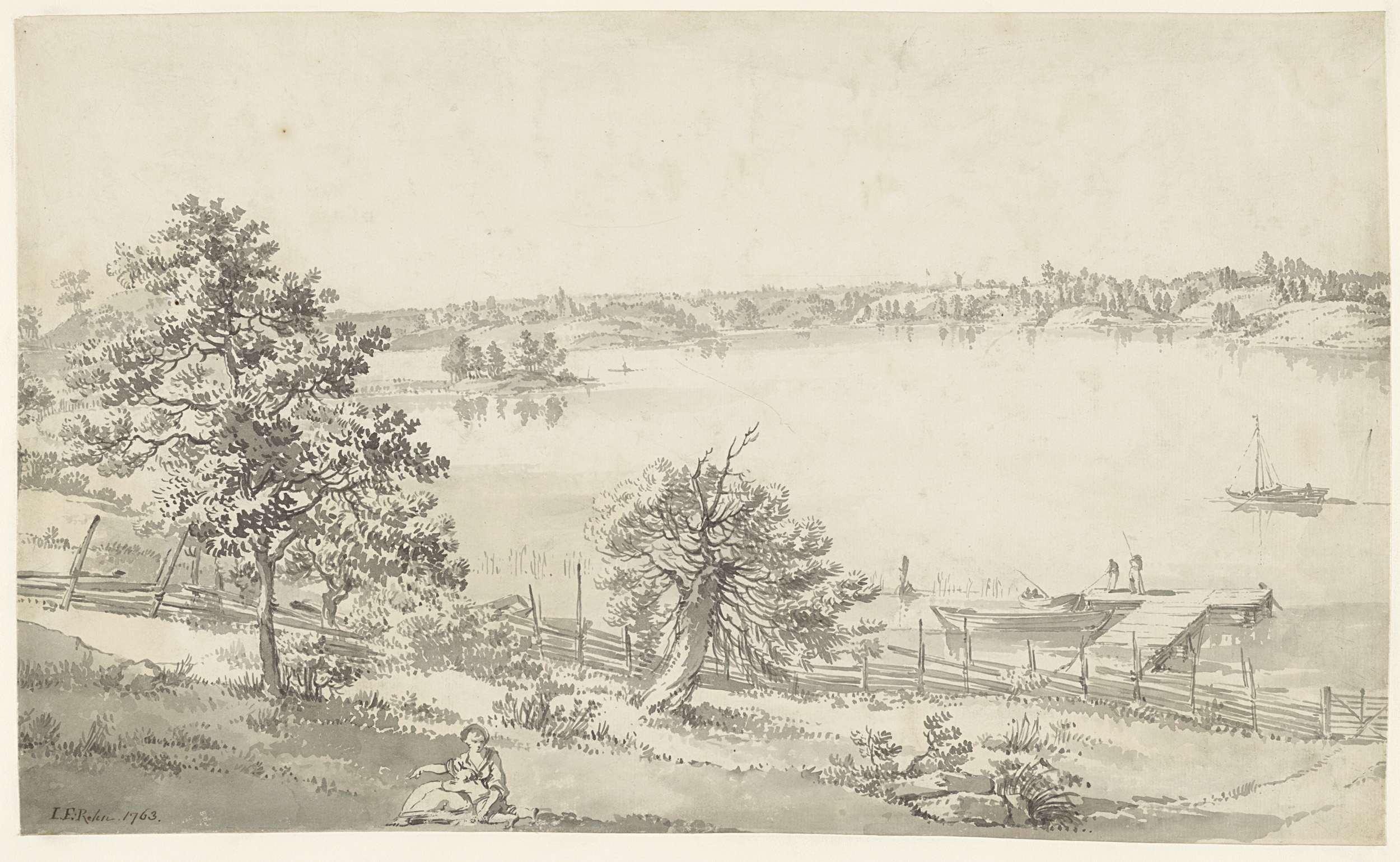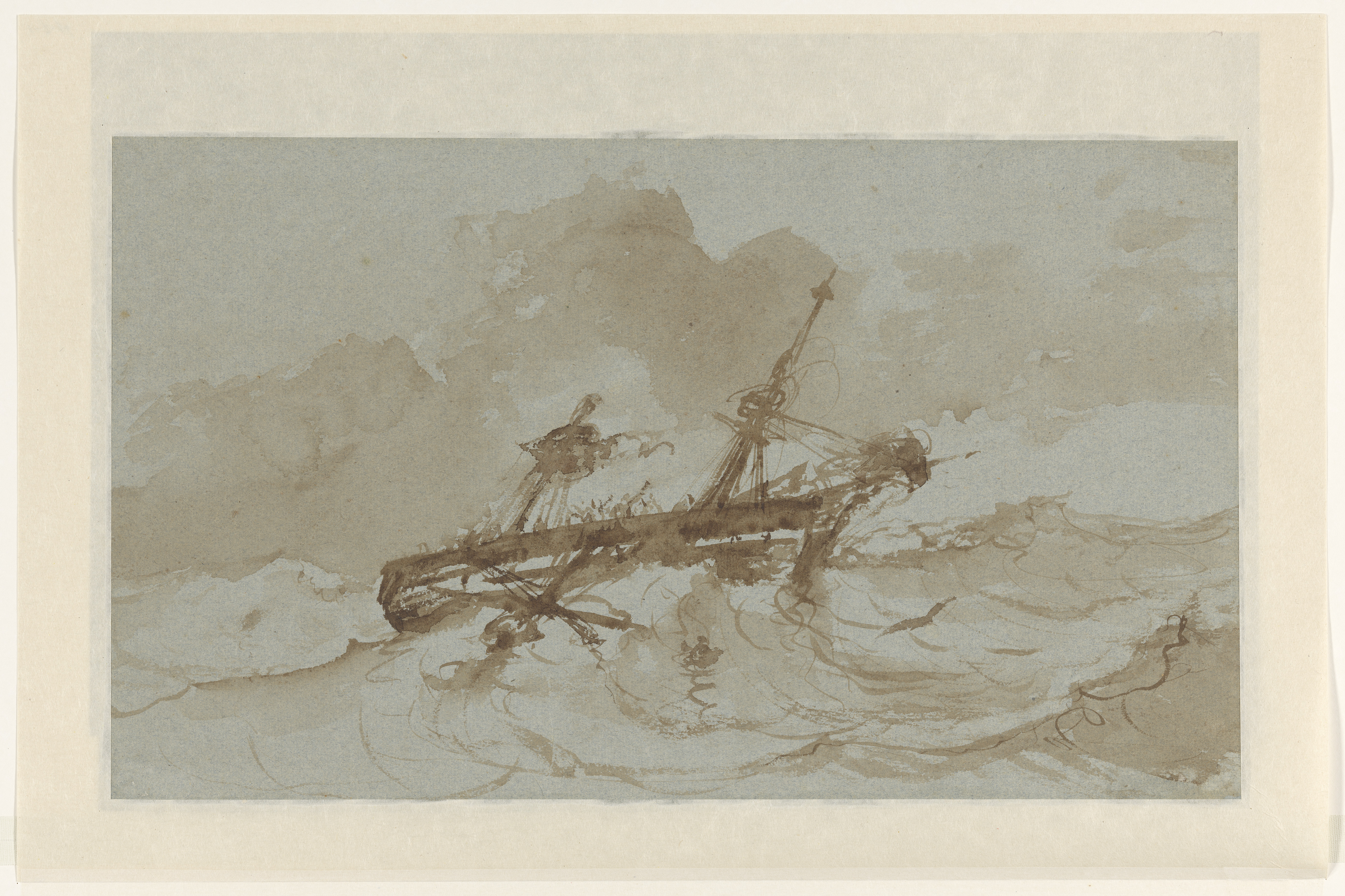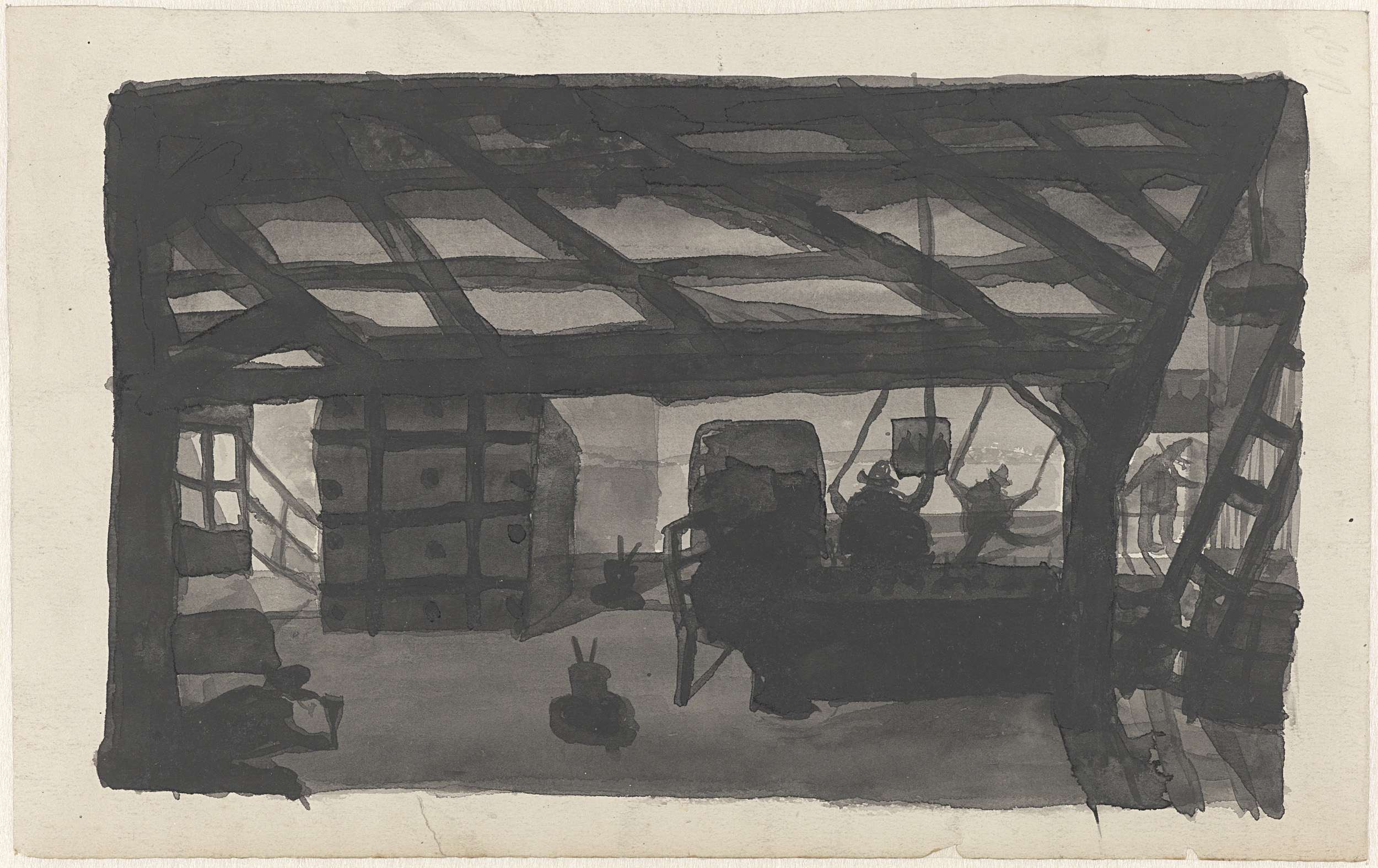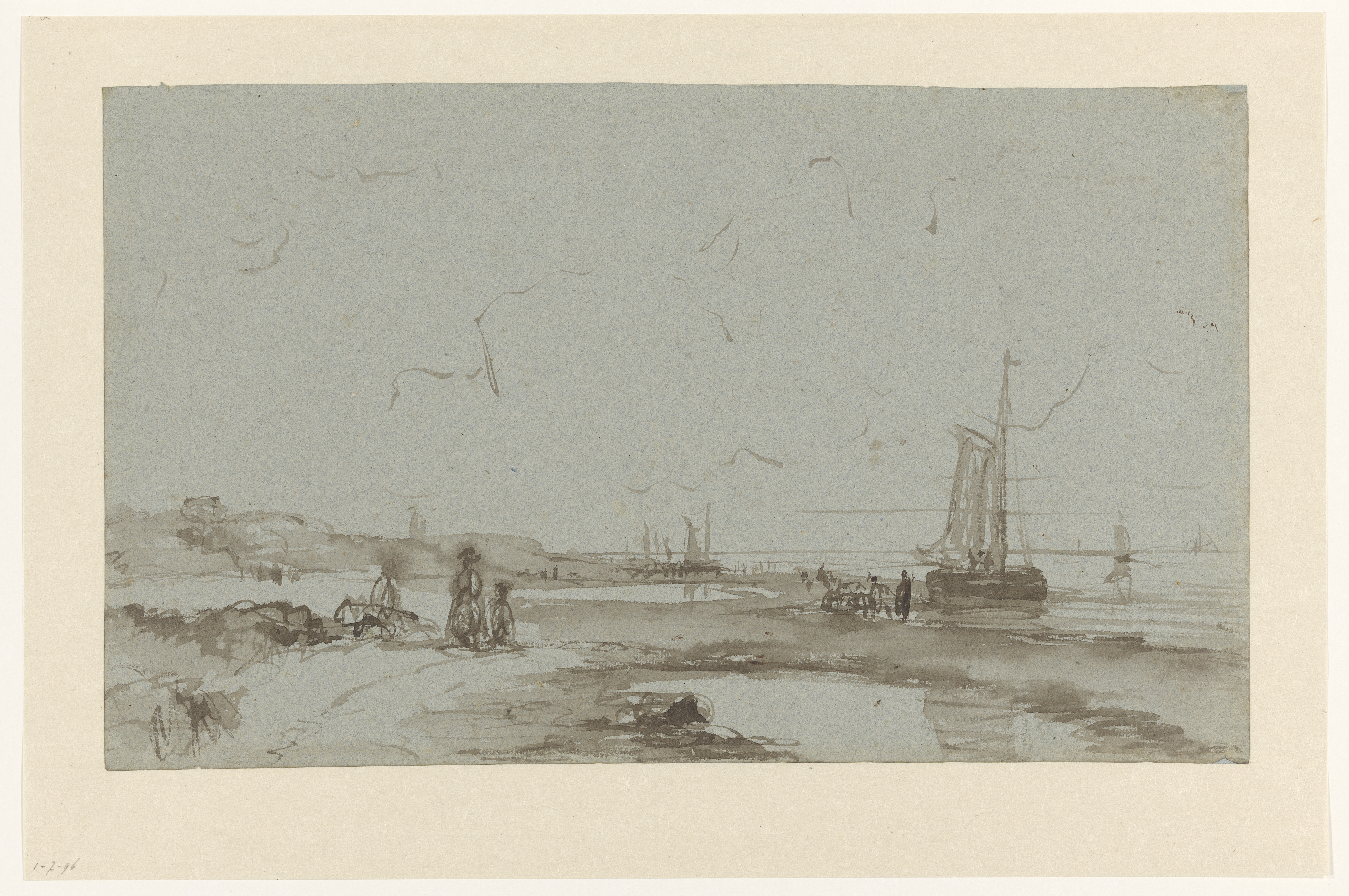 Studie van een anker, deel van een scheepsmast en st...