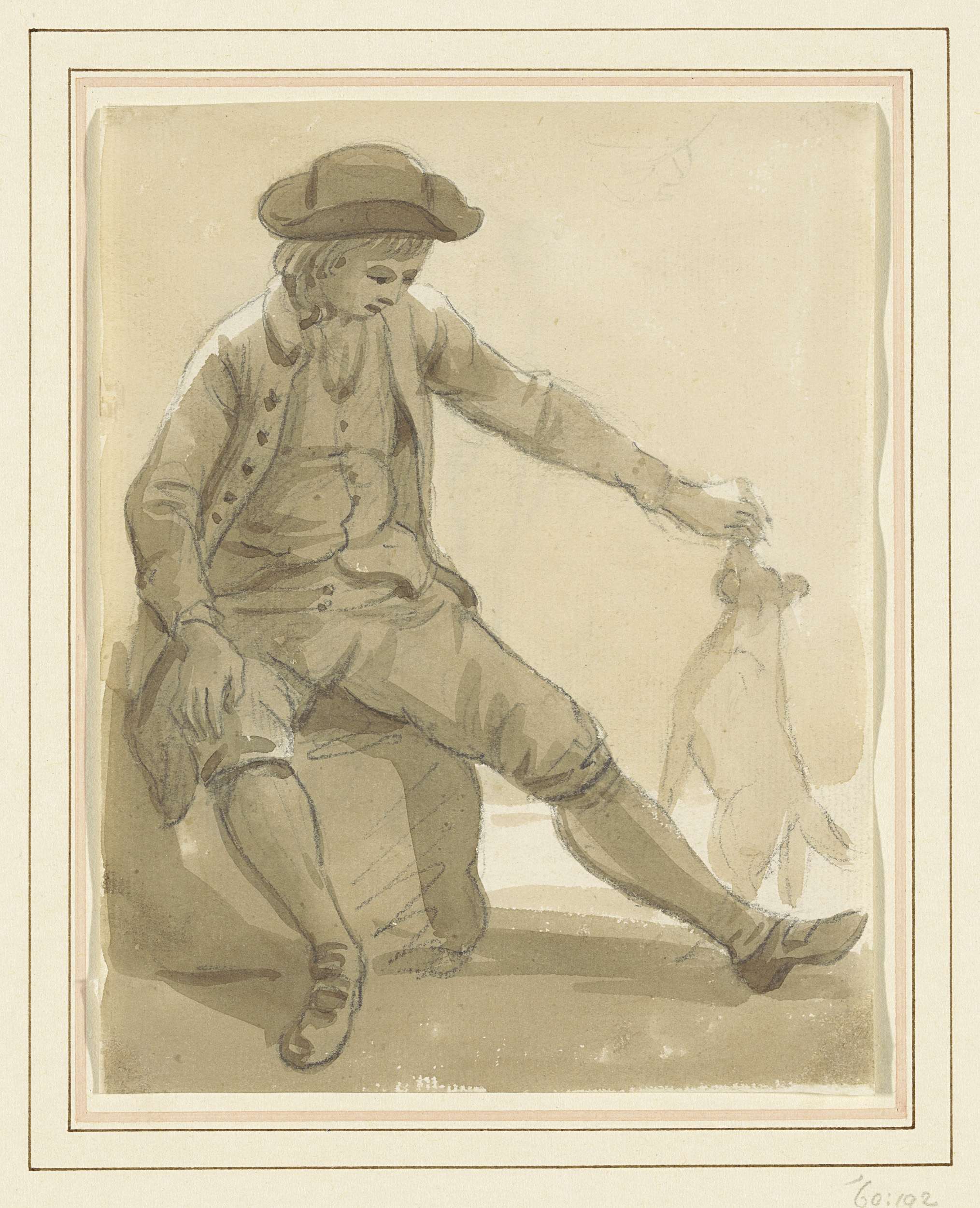 Zittende jongeman met vilten hoed op