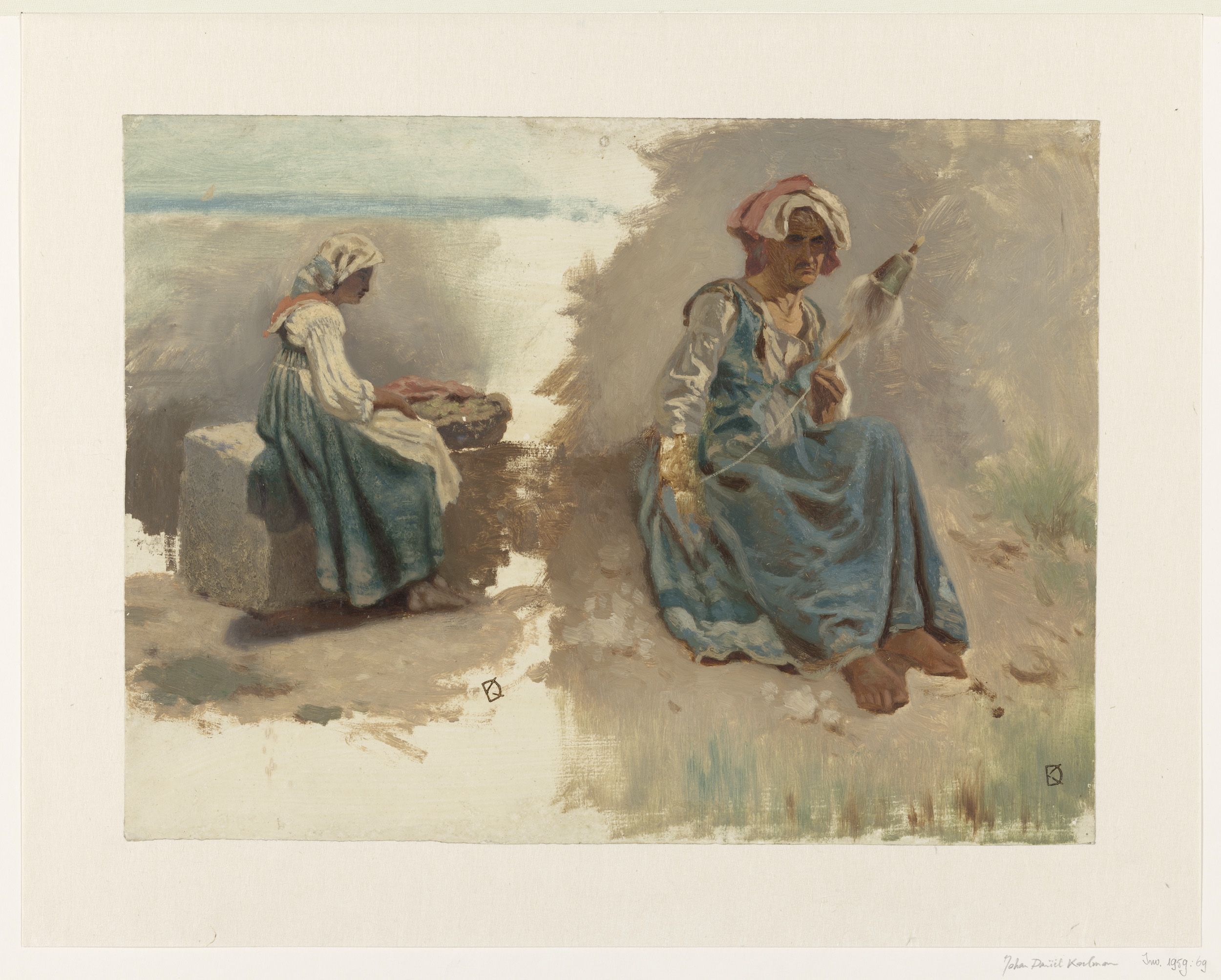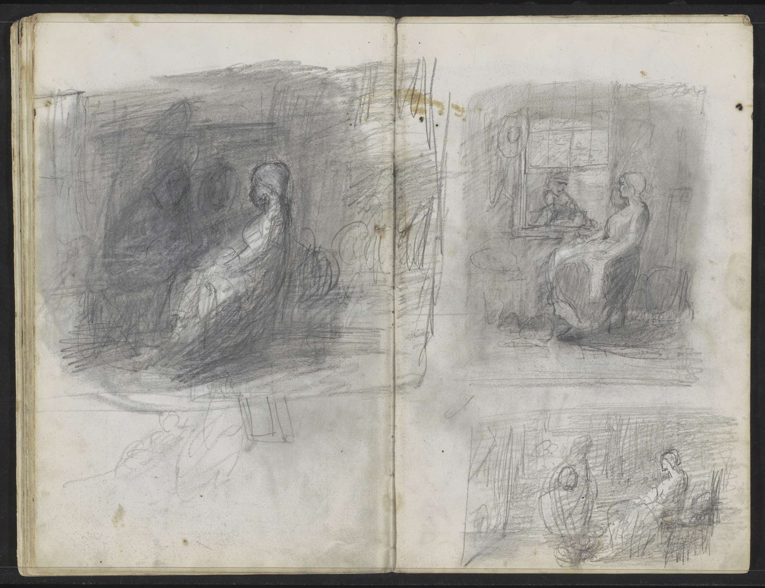 Twee schetsen van zittende vrouwen