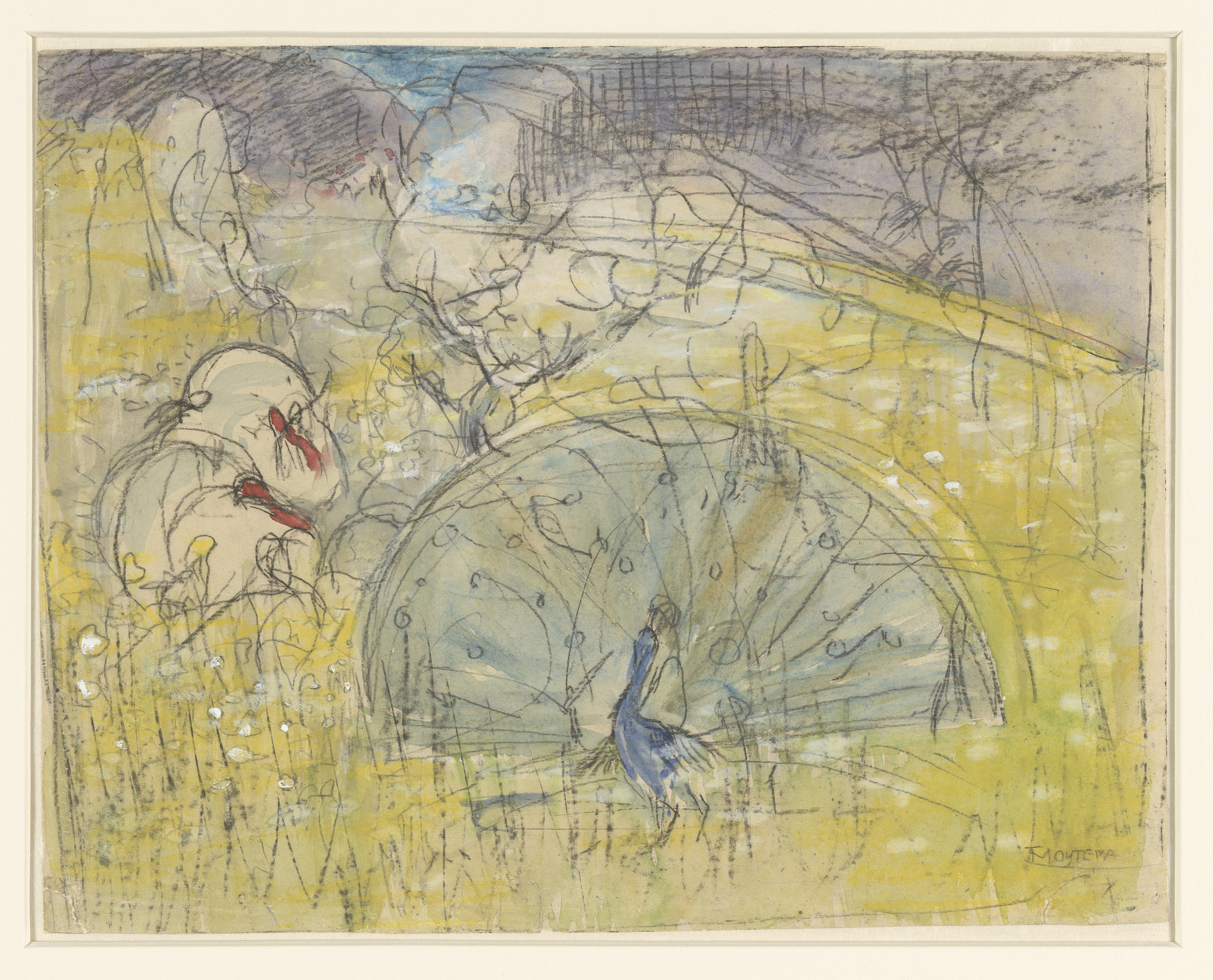 Pronkende pauw en twee kalkoenen