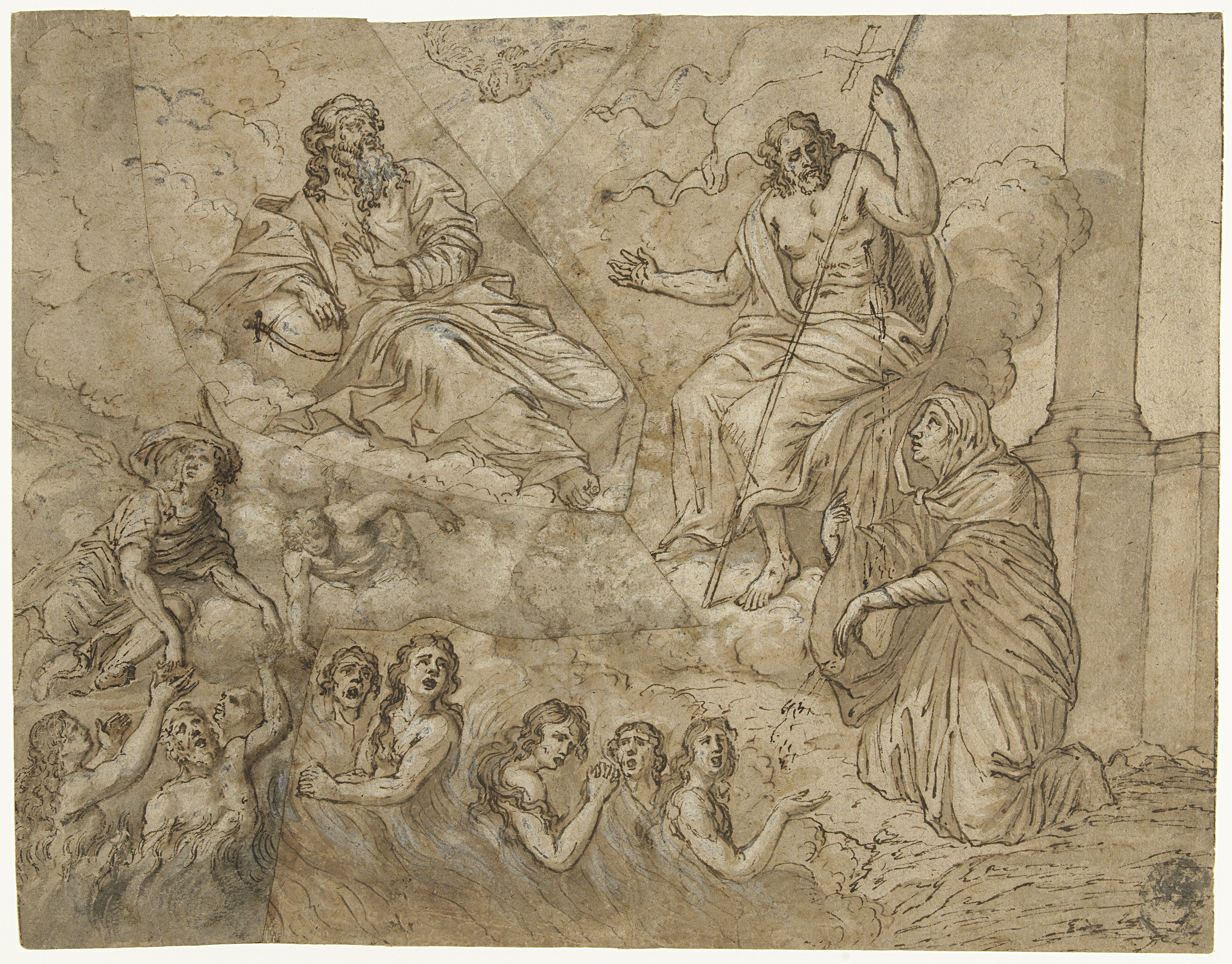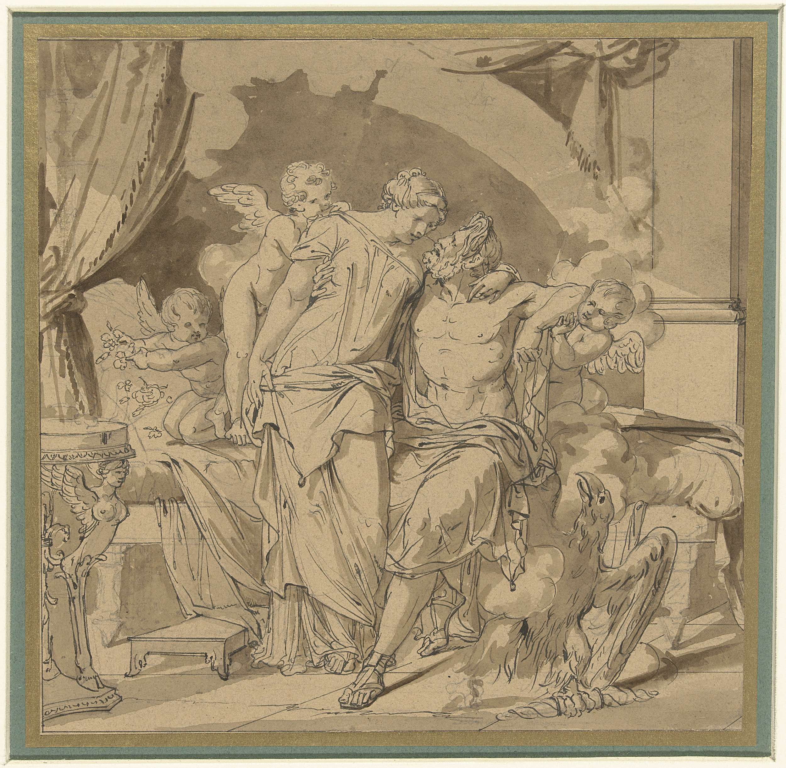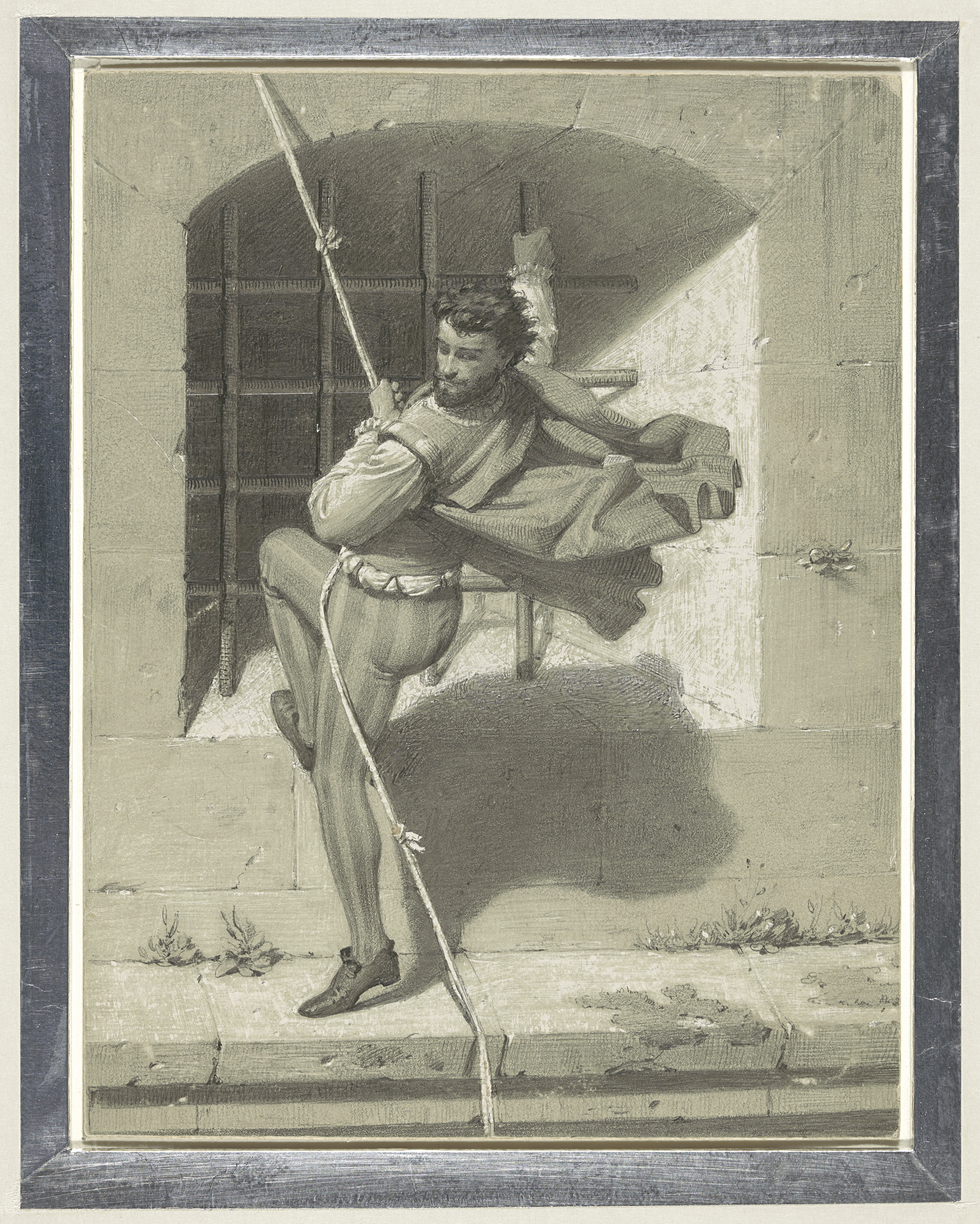 Vastgebonden naakte man en naakte figuur met opgeven...