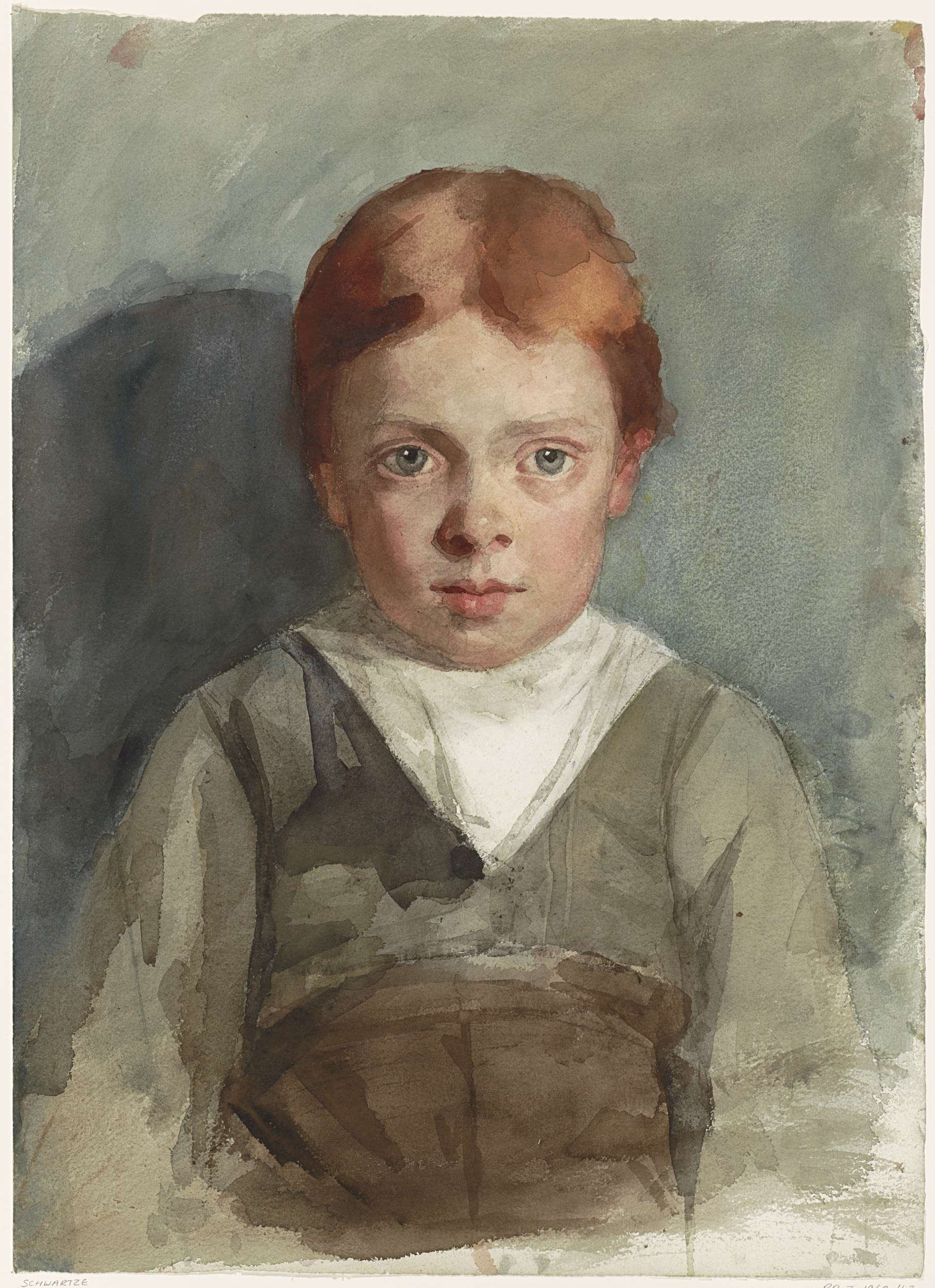 Portret van een jongetje met rood haar, van voren