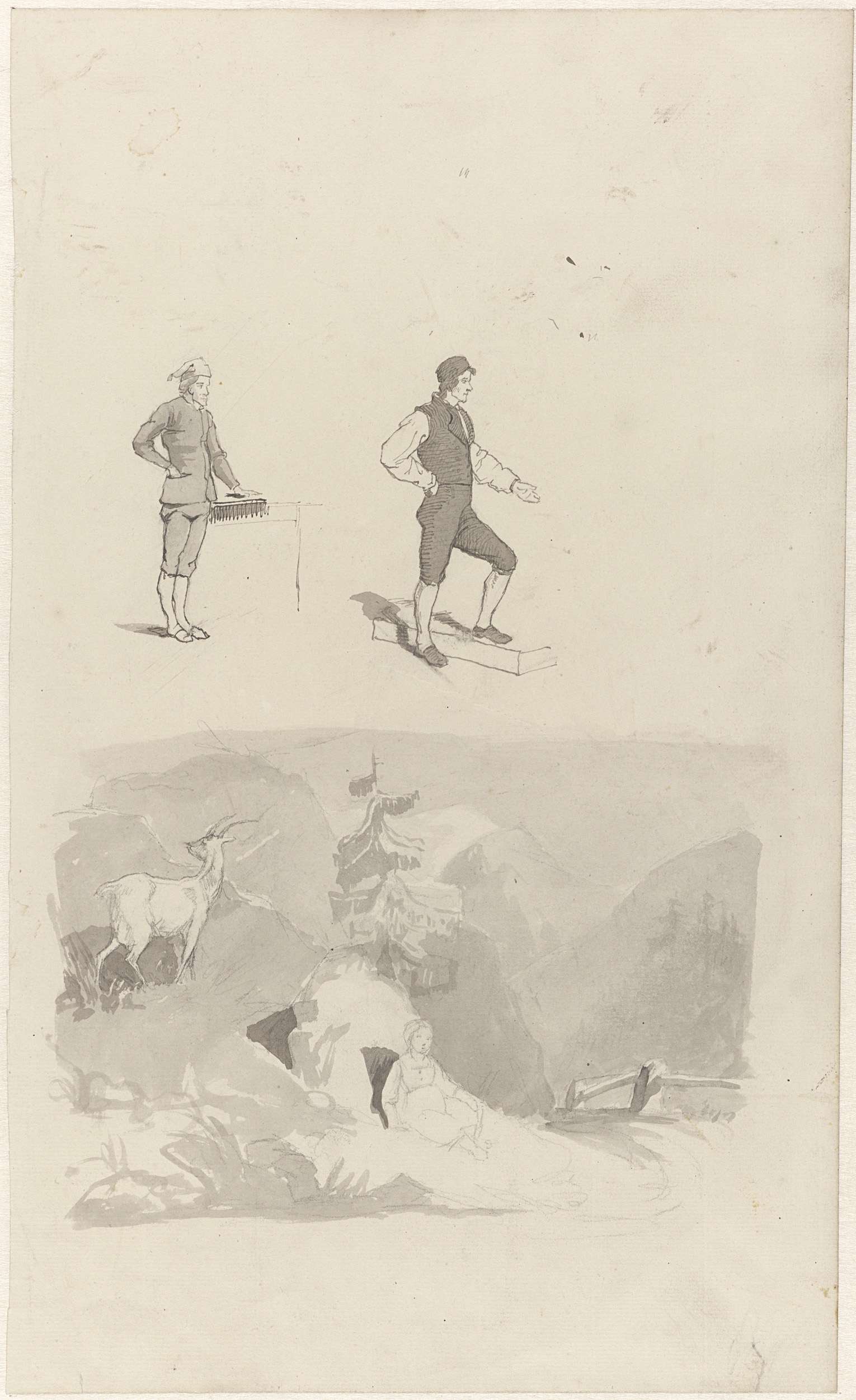 Studie van twee mannen en een berglandschap