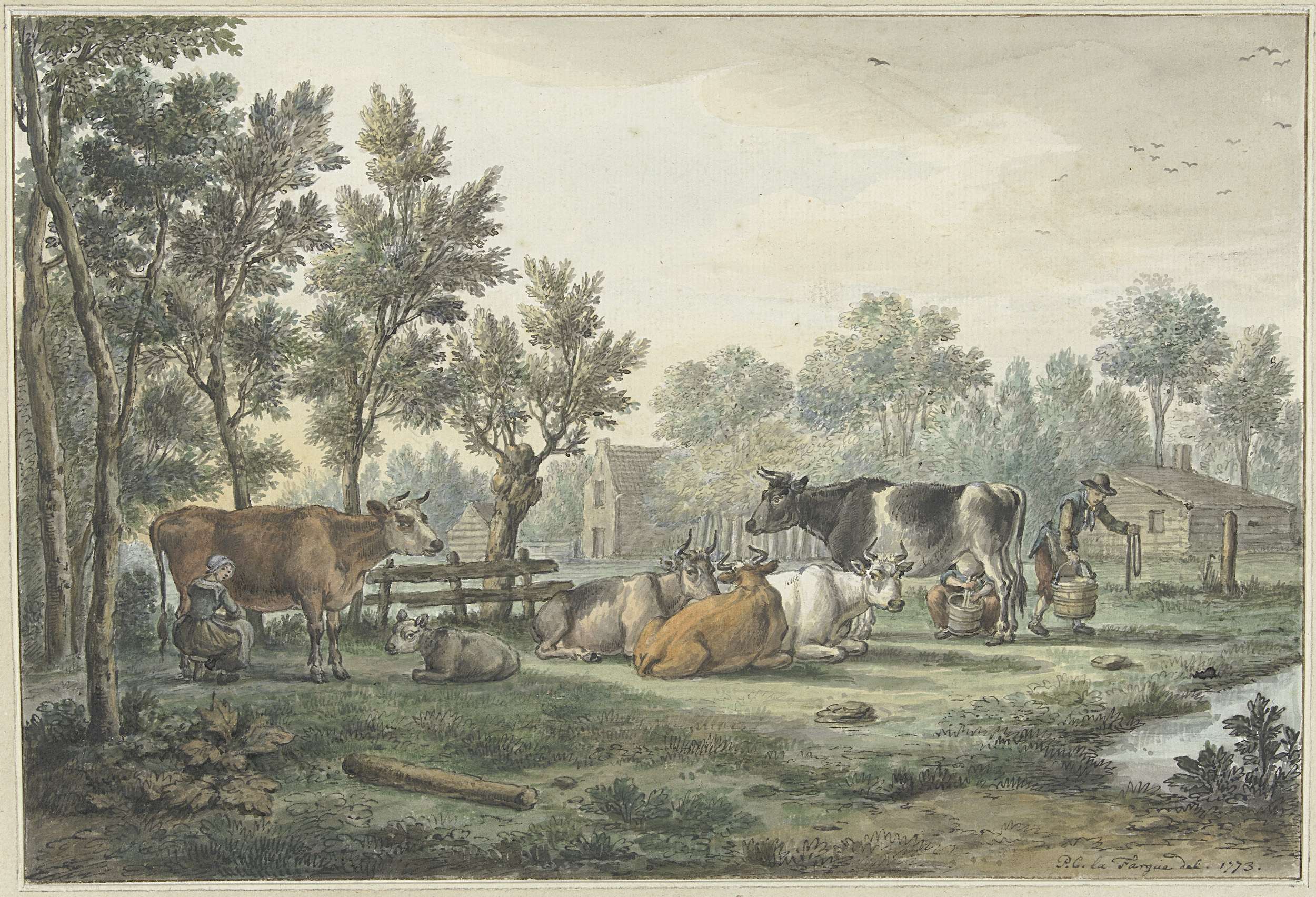 Wei met koeien die gemolken worden