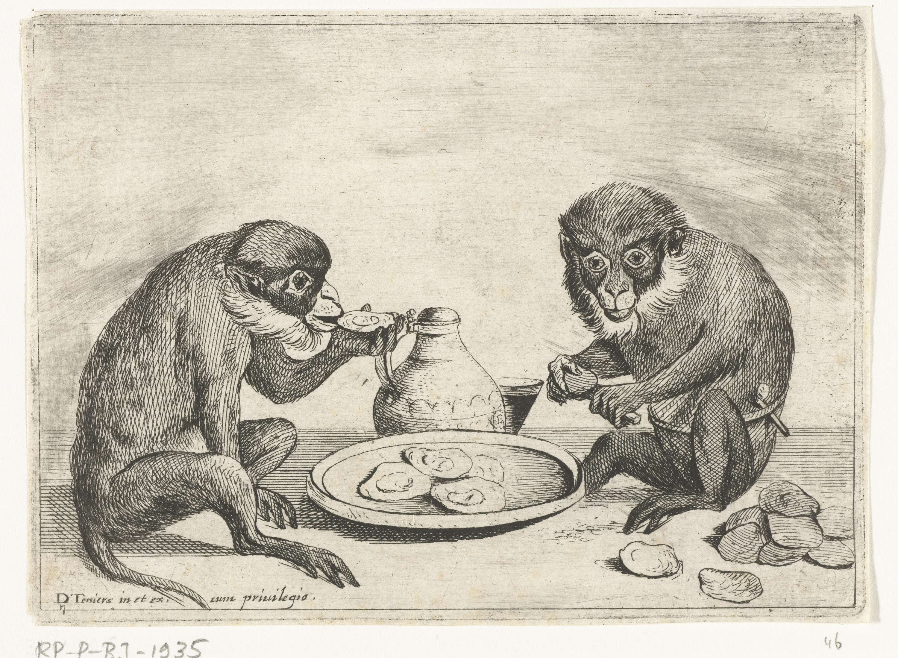 Twee apen eten oesters