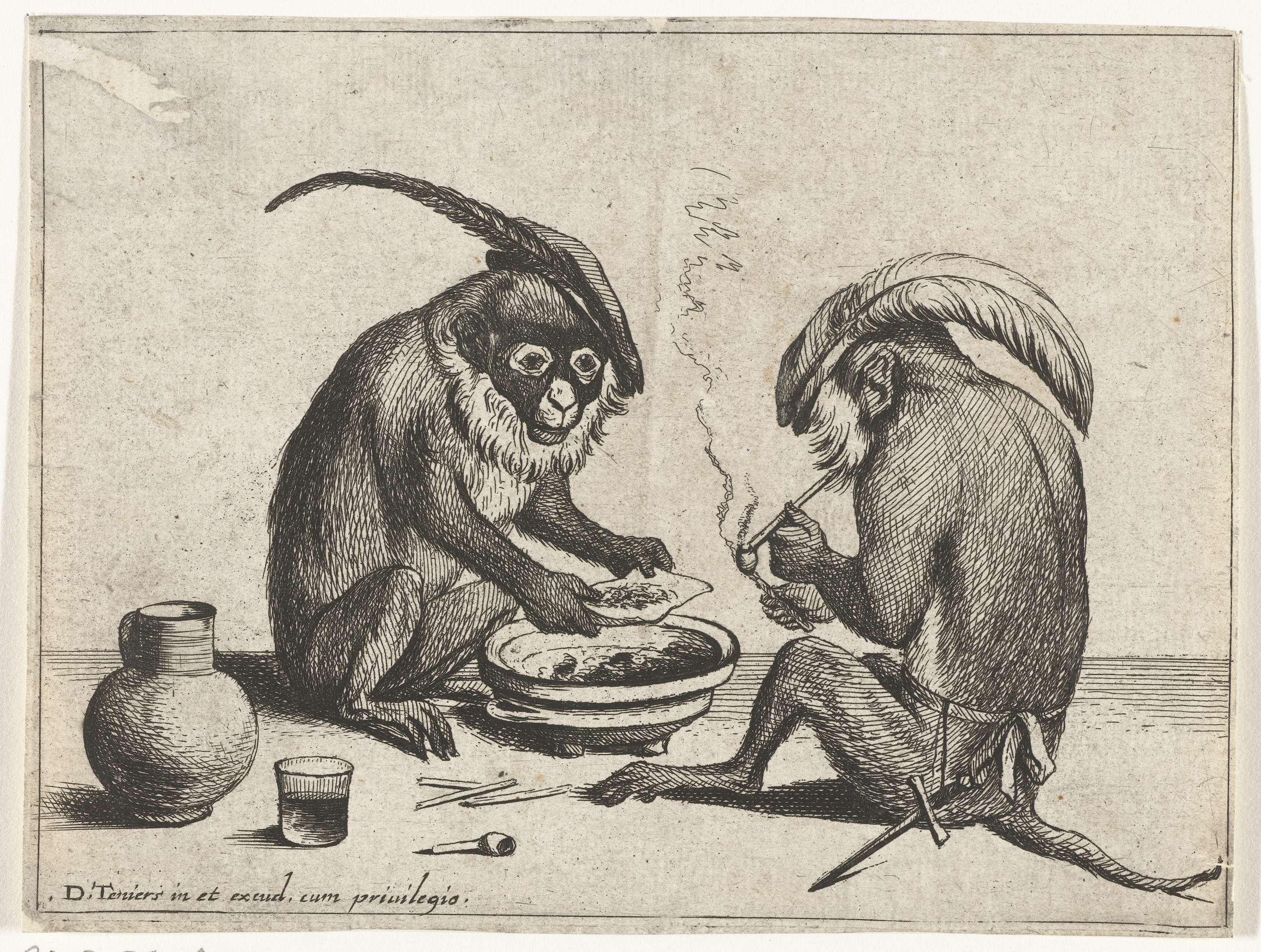 Twee apen roken pijp