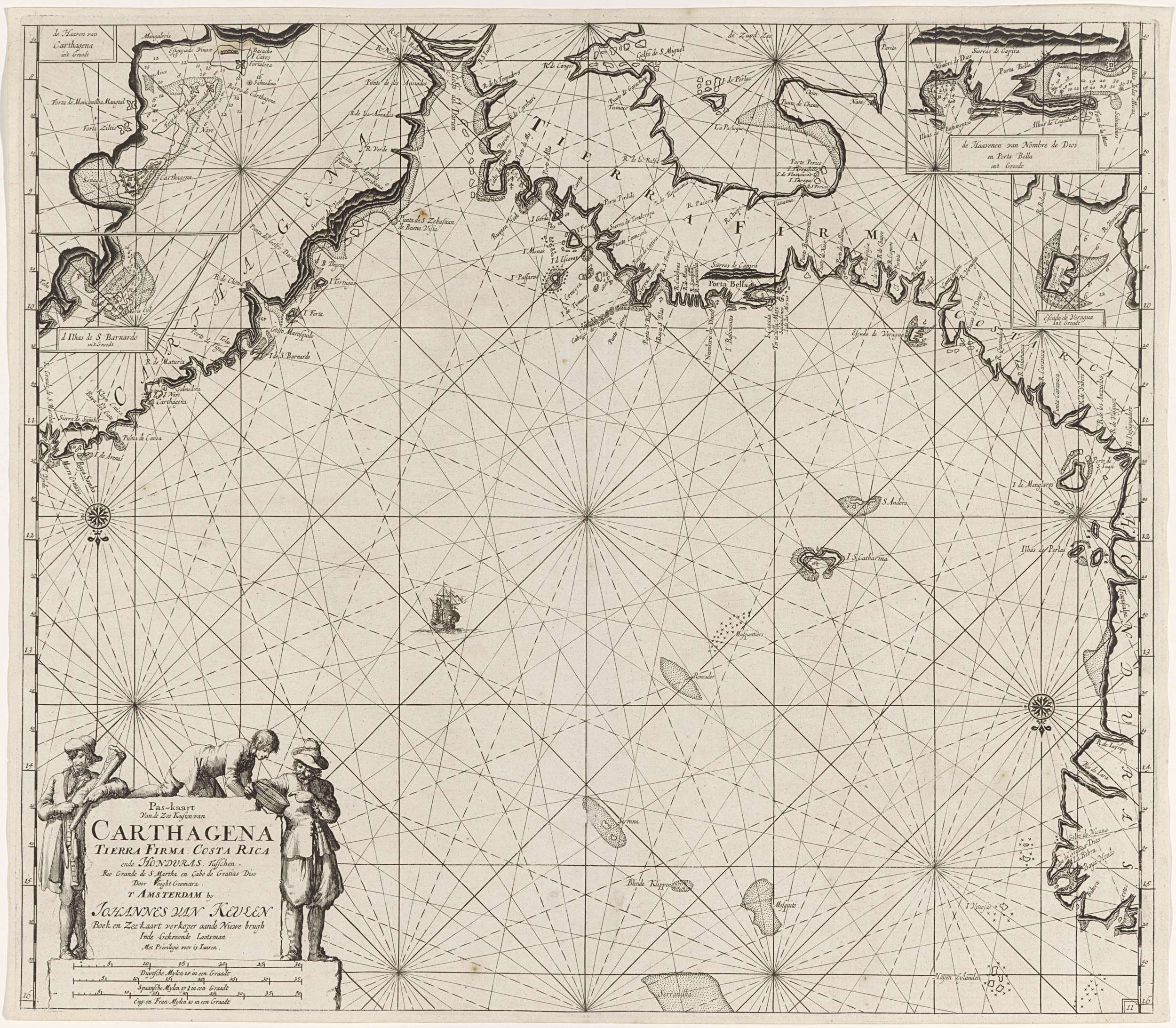 Paskaart van de kusten Colombia, Panama, Costa Rica ...