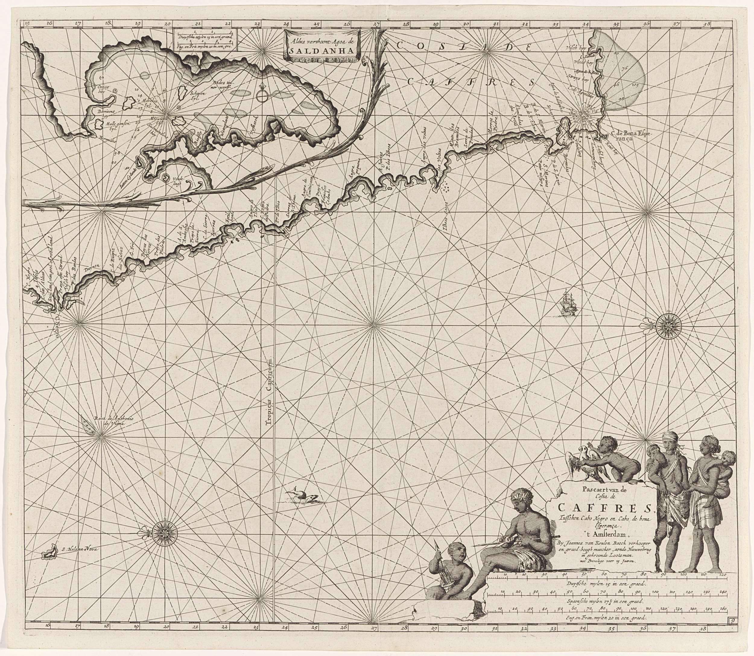 Paskaart van de kust van Namibië en Zuid-Afrika