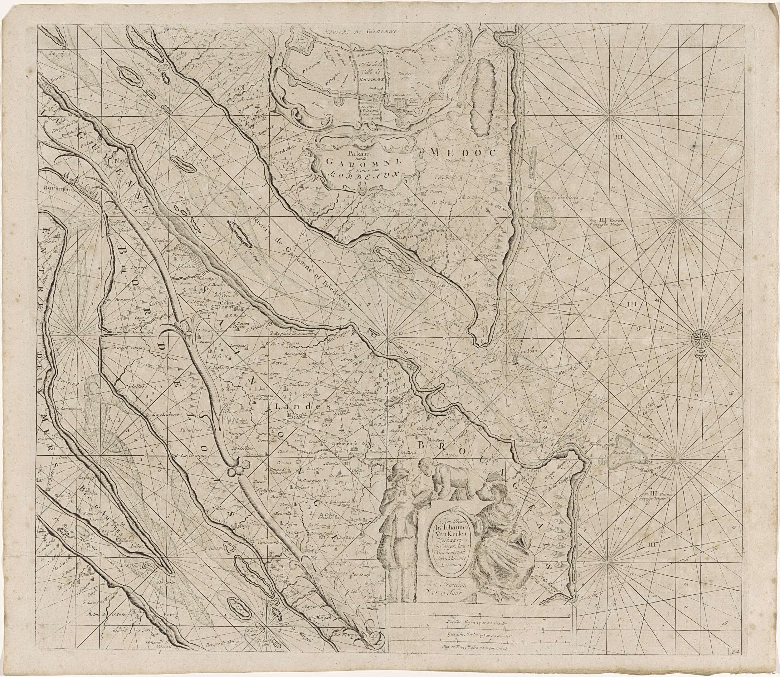 Paskaart van de rivier de Gironde tot aan Bordeaux