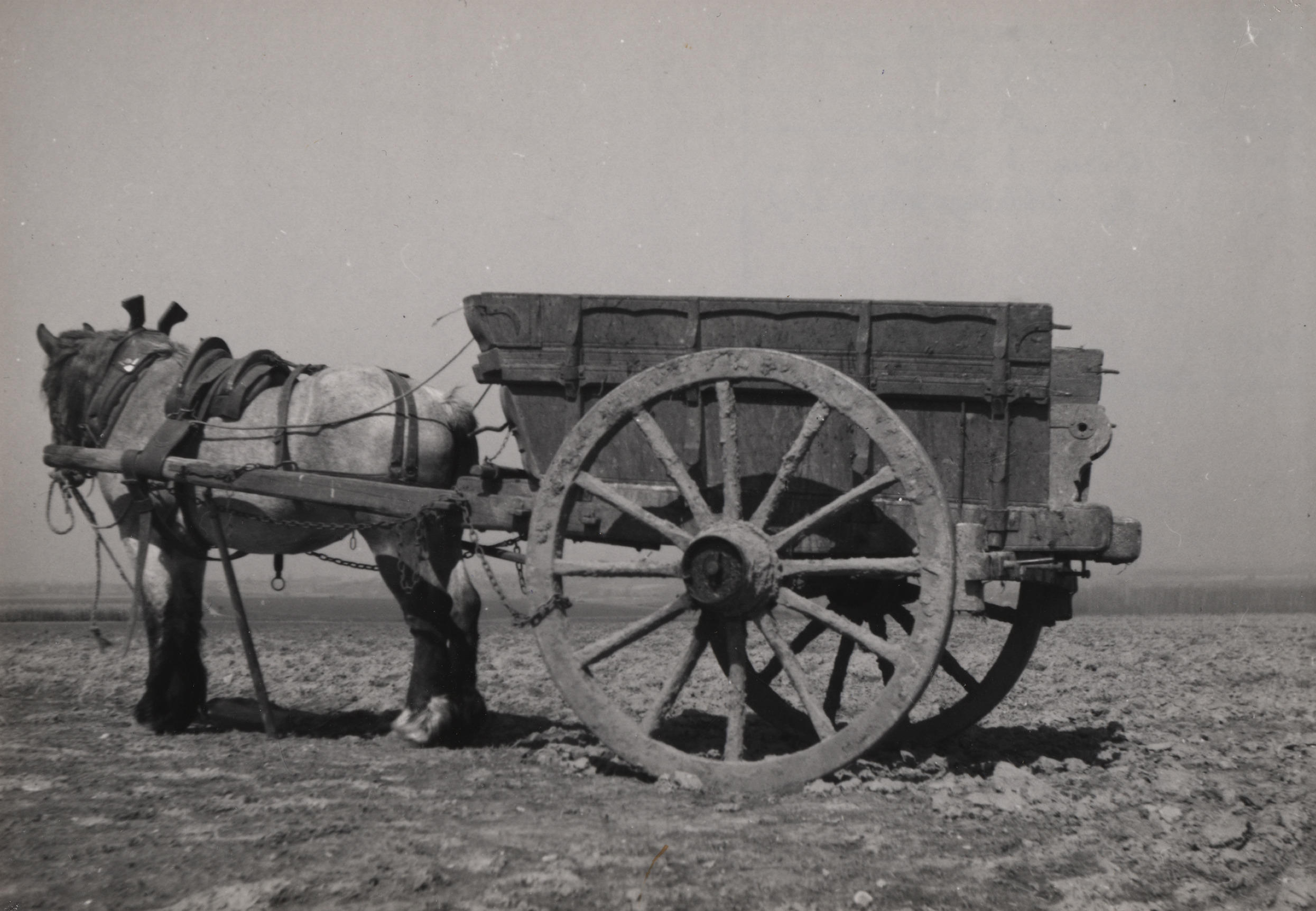Kar met paard bij Ubachsberg, 1950 (zwart-wit foto)