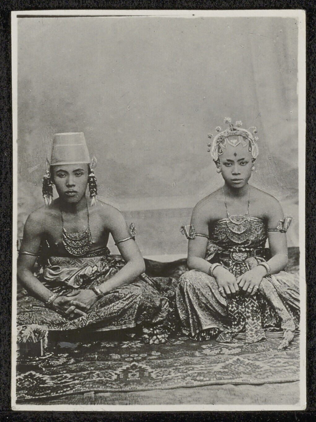 Studioportret van twee Javaanse danseressen