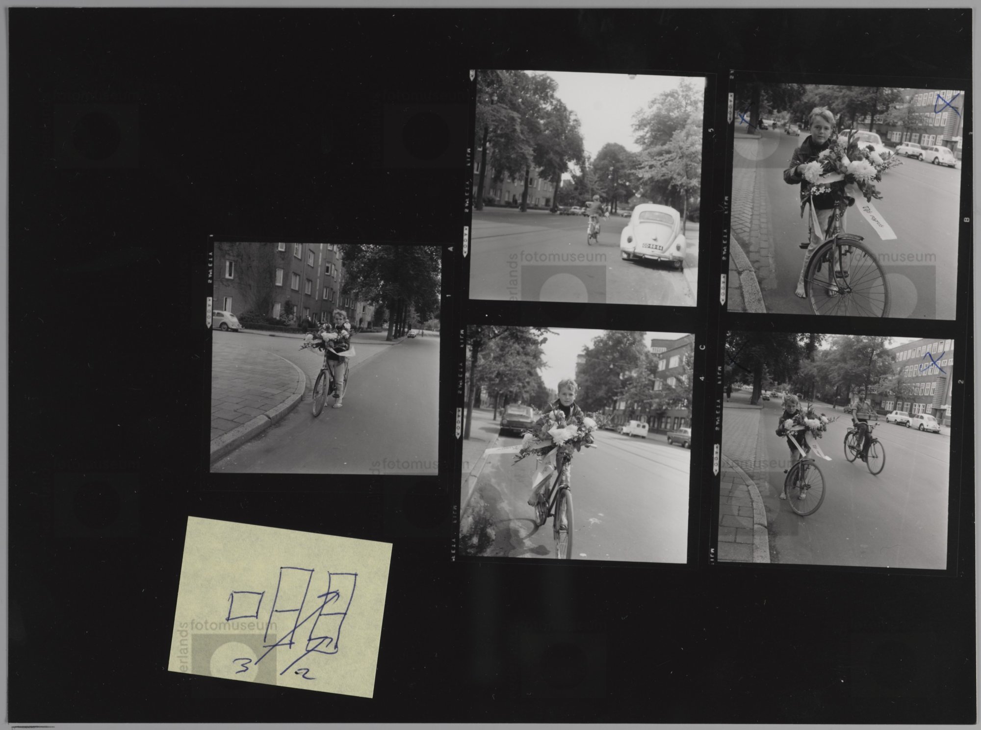 Amsterdam. Jongen met krans op de fiets. Bezorger va...