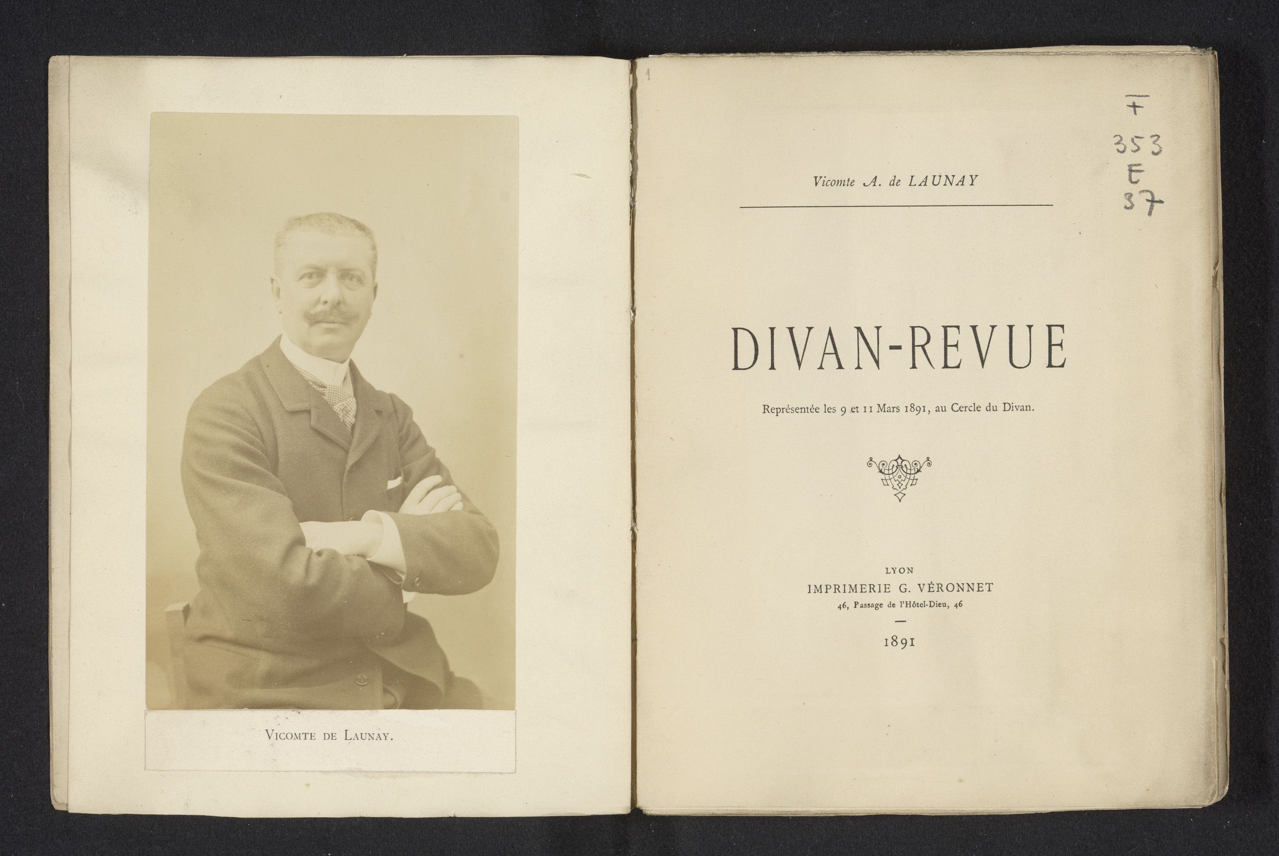 Divan-revue représentée les 9 et 11 Mars 1891, au Ce...