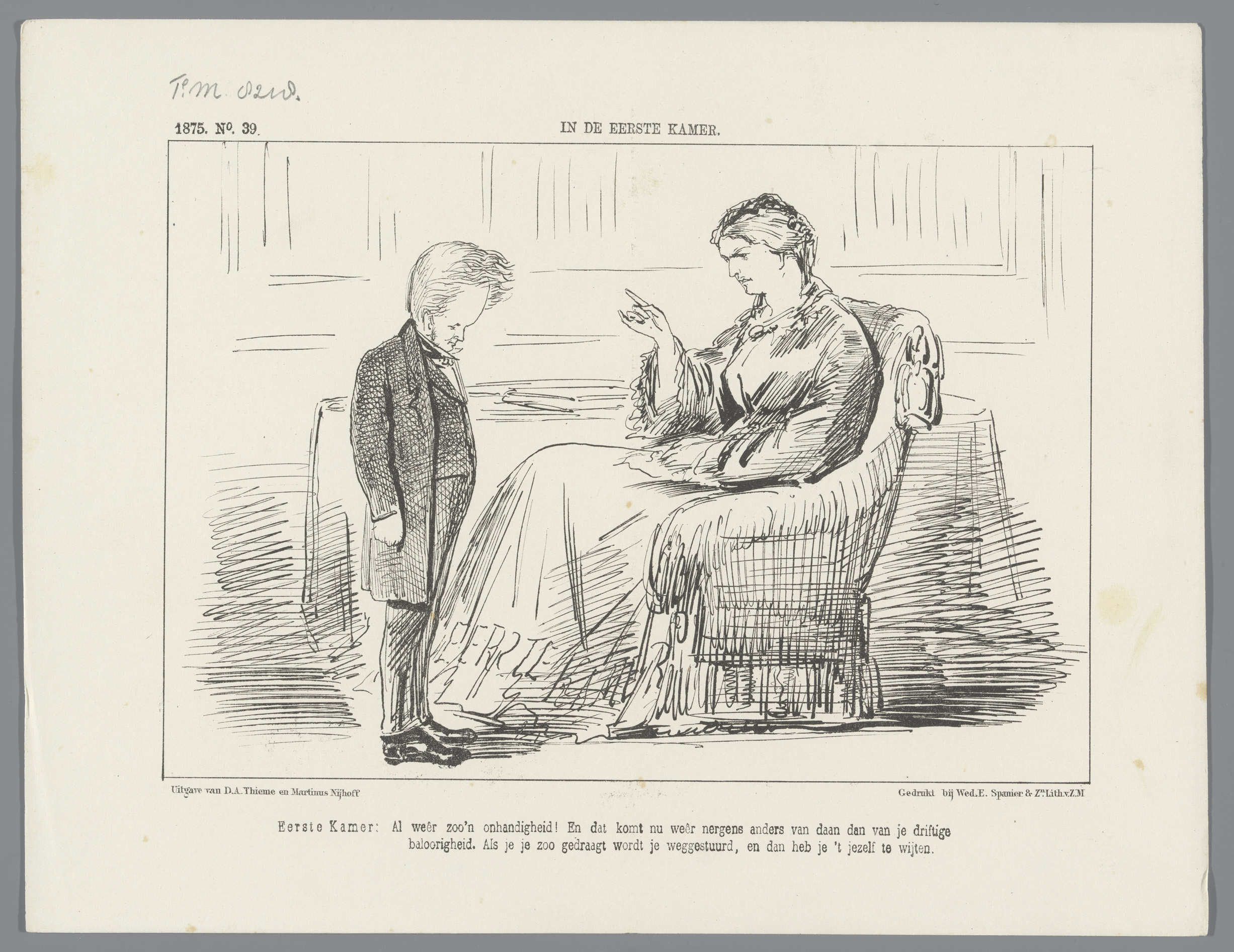 Spotprent op de debatten in de Eerste Kamer over de ...