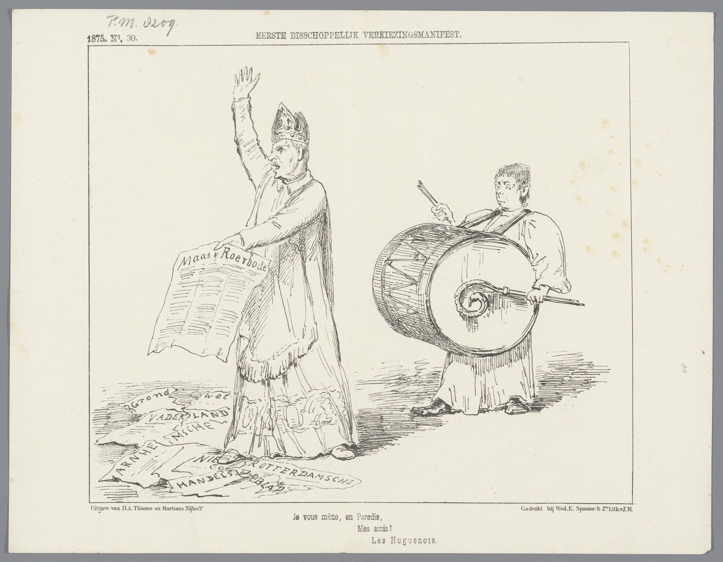 Spotprent waarin een bisschop de liberale dagbladen ...
