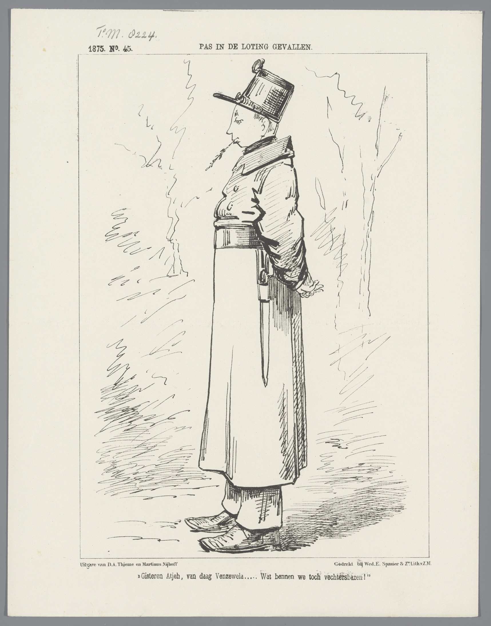 Spotprent op slechte staat van de krijgsmacht, 1875