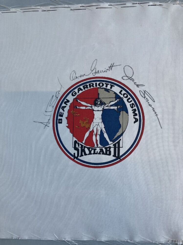 Naailap van katoen, benaaid met wit katoen met in de...