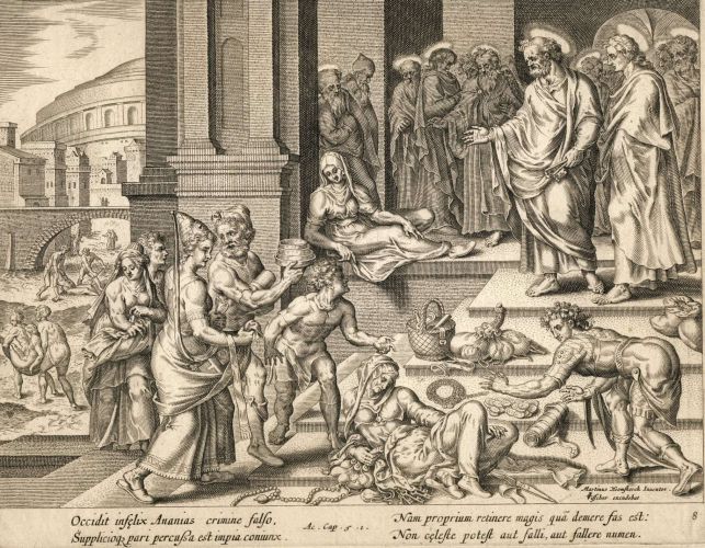 Ananias en zijn vrouw Saffira verkopen hun have