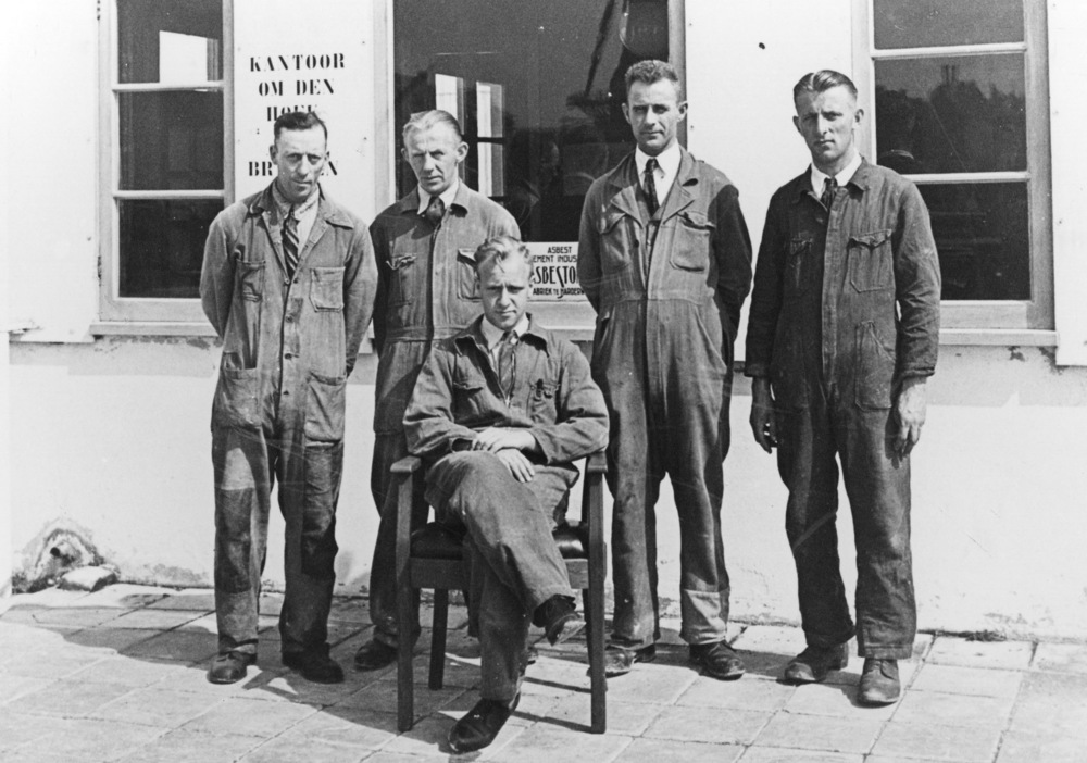 Personeel Asbestona poseert voor de fabriek