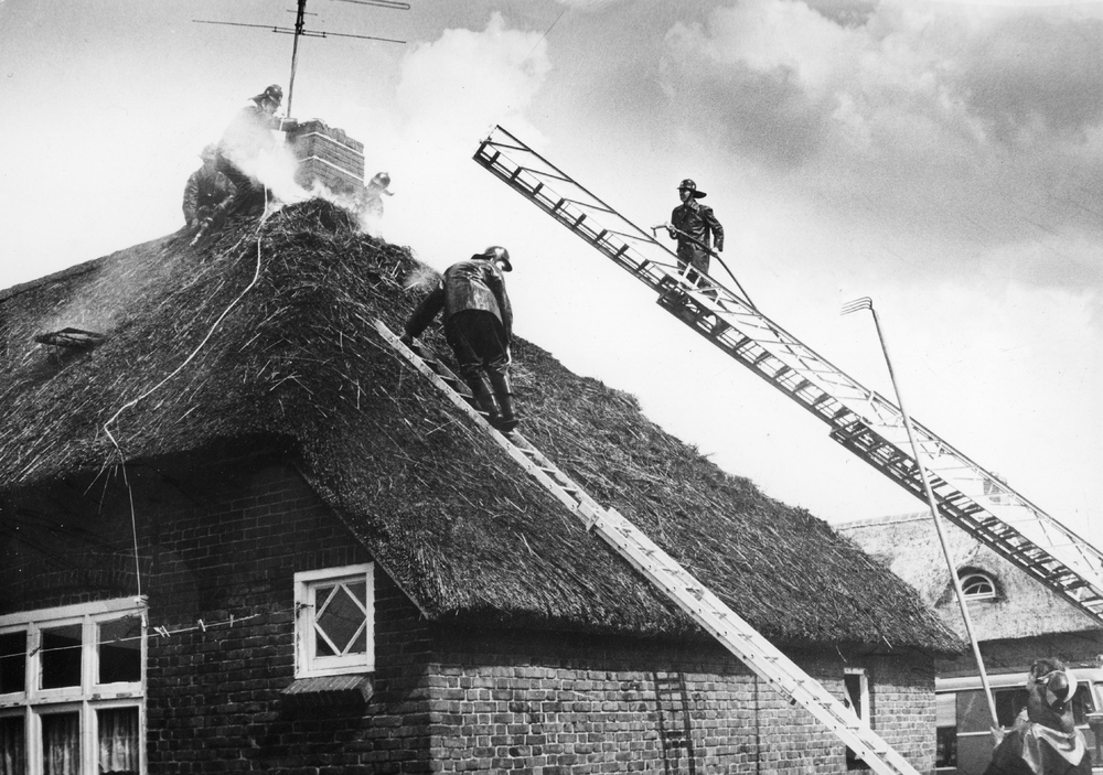 Brand in een rieten dak van een woning in het Nachthok