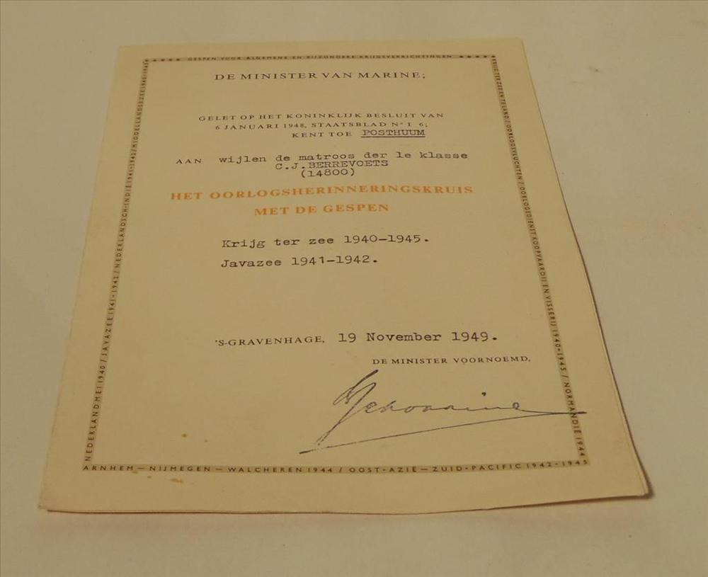 Certificaat behorende bij het Oorlogsherinneringskru...