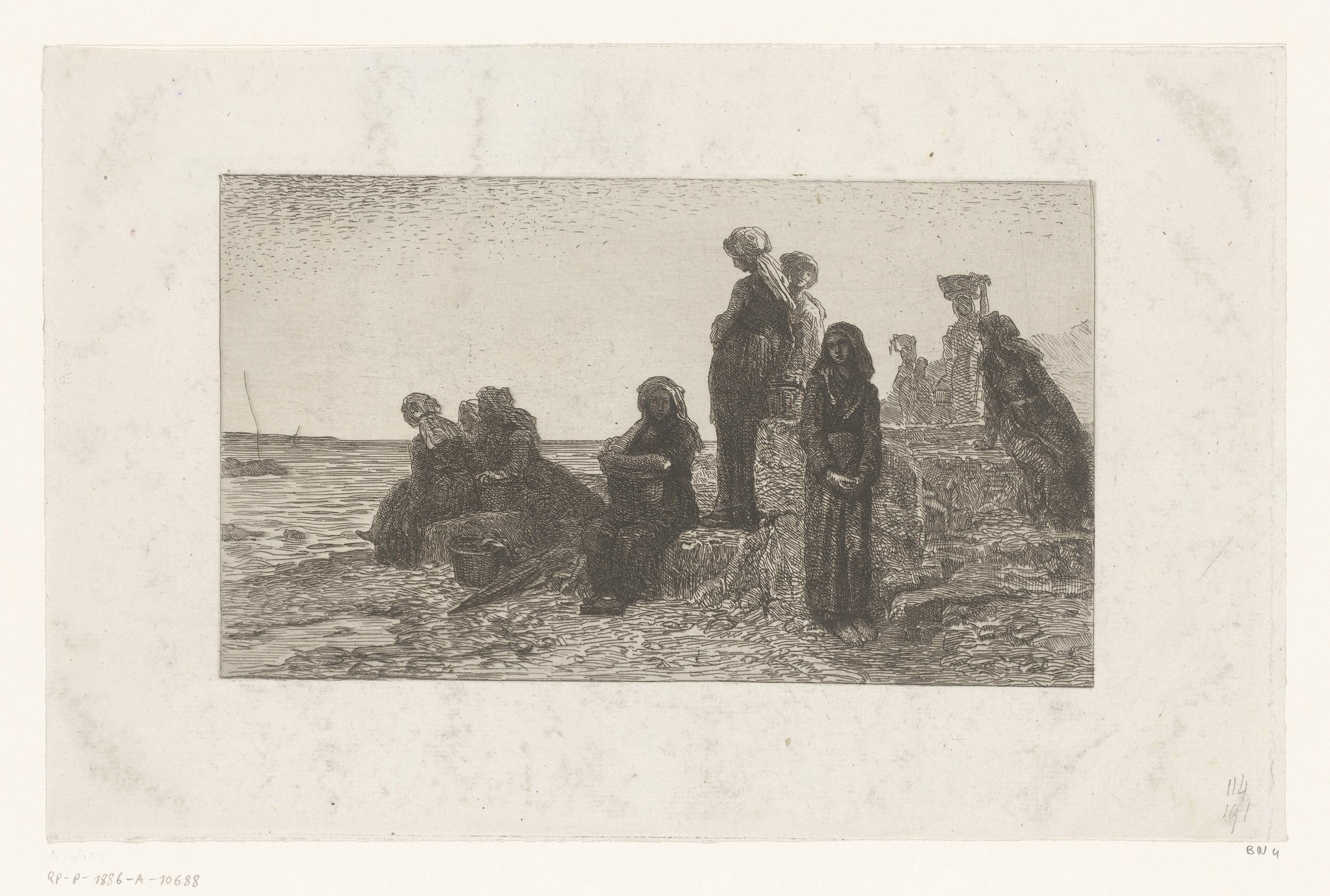 Rustende vissersvrouwen aan het water