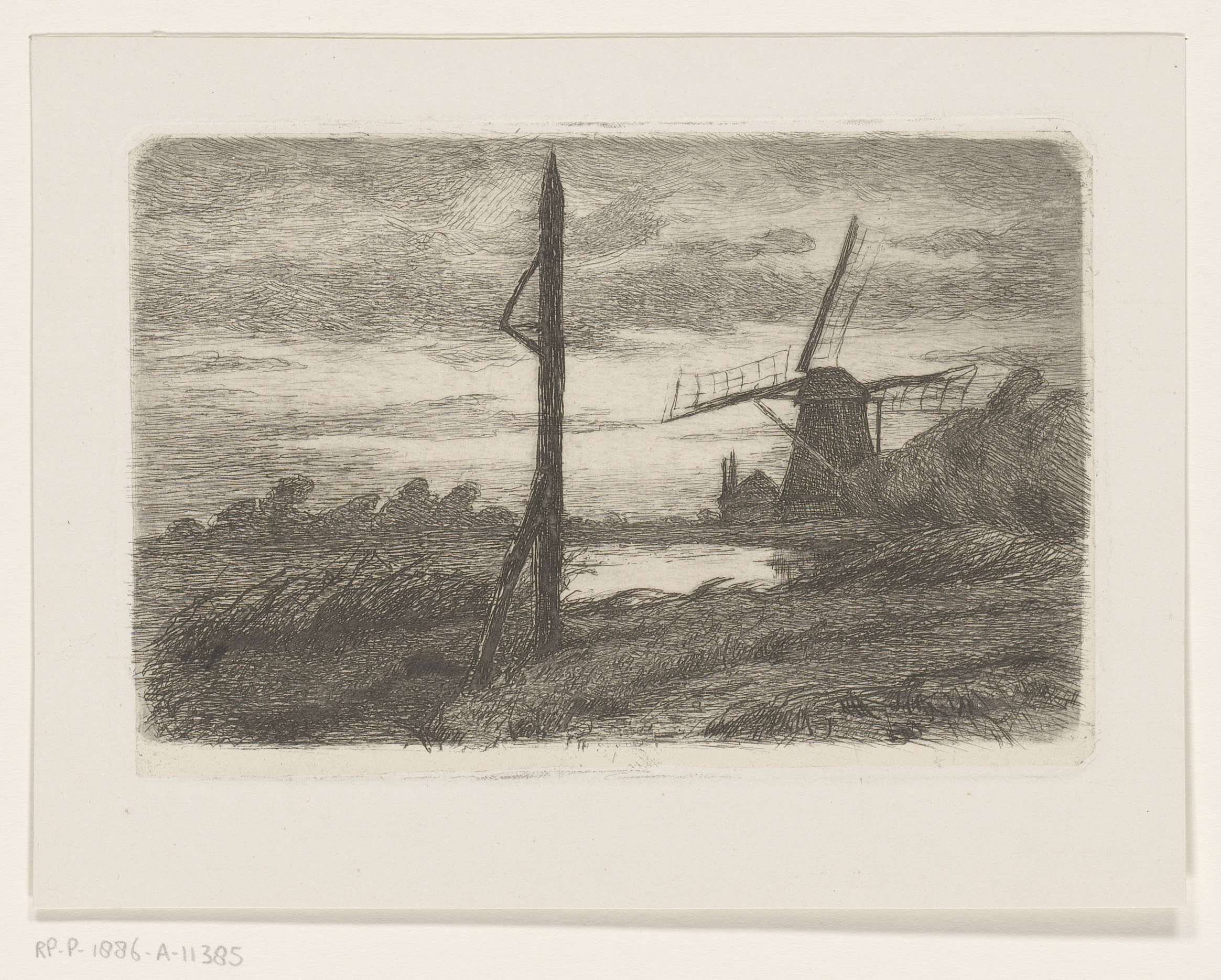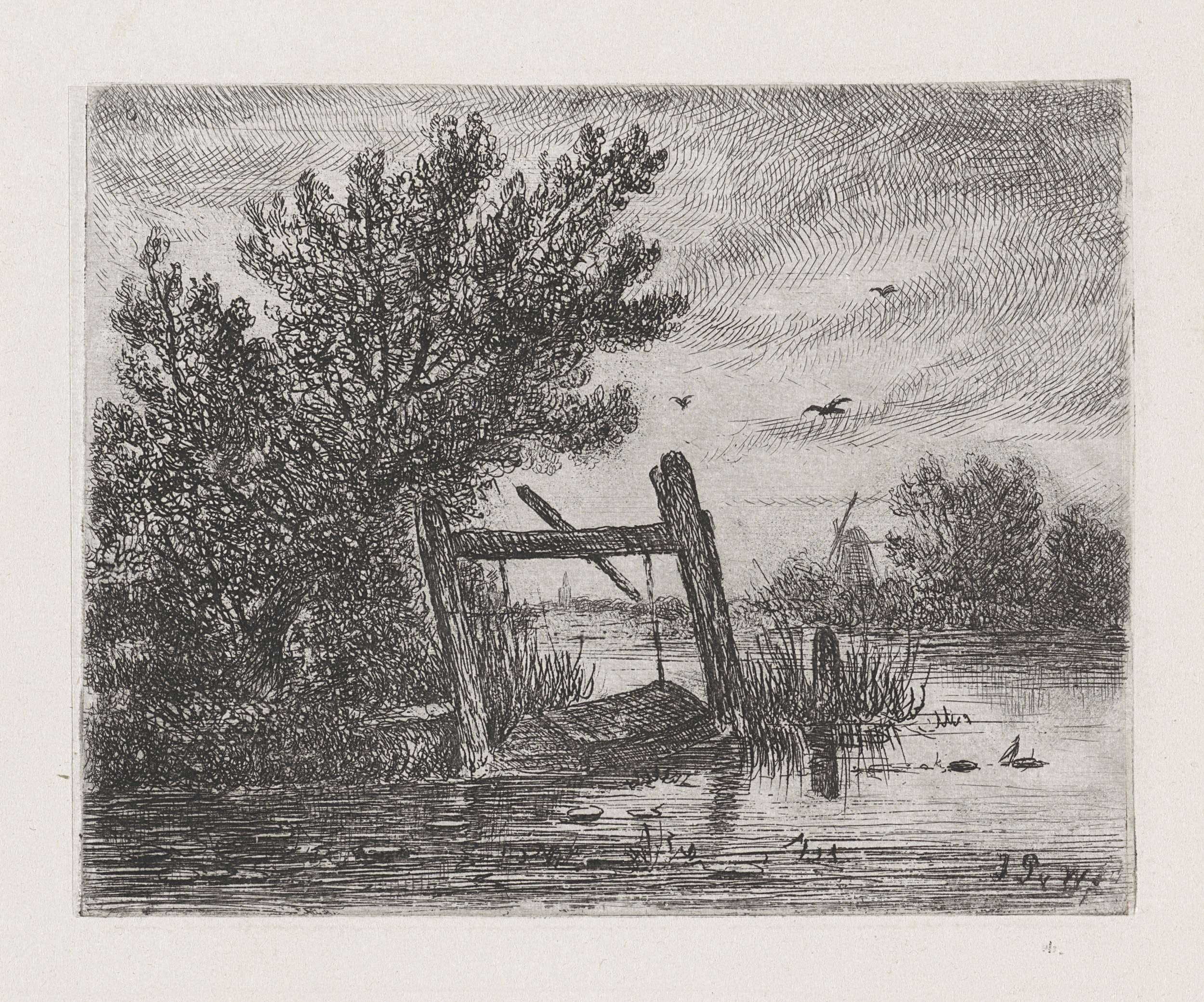 Riviergezicht met molen