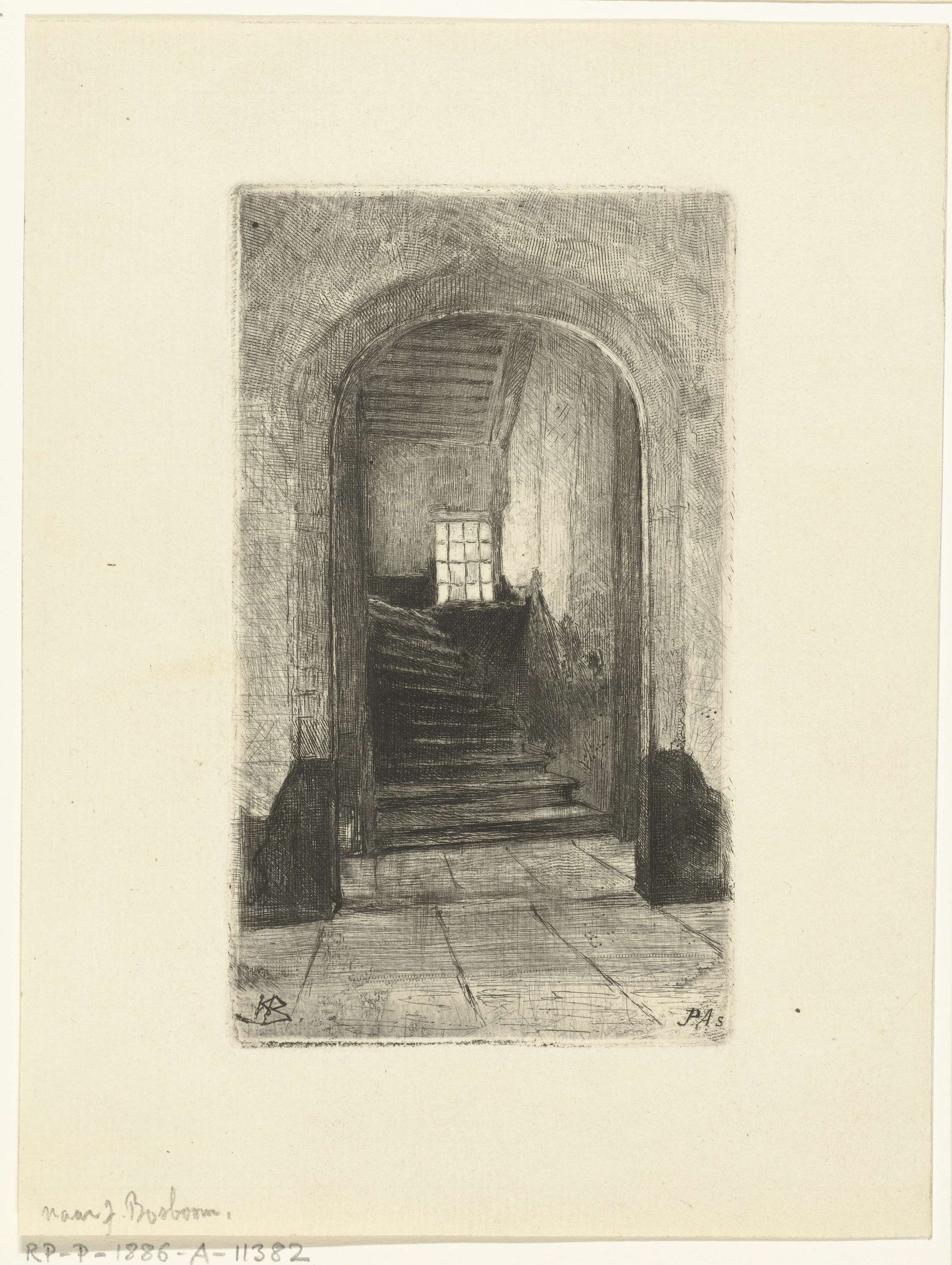 Gezicht op de trap in het prinsenhof te Delft