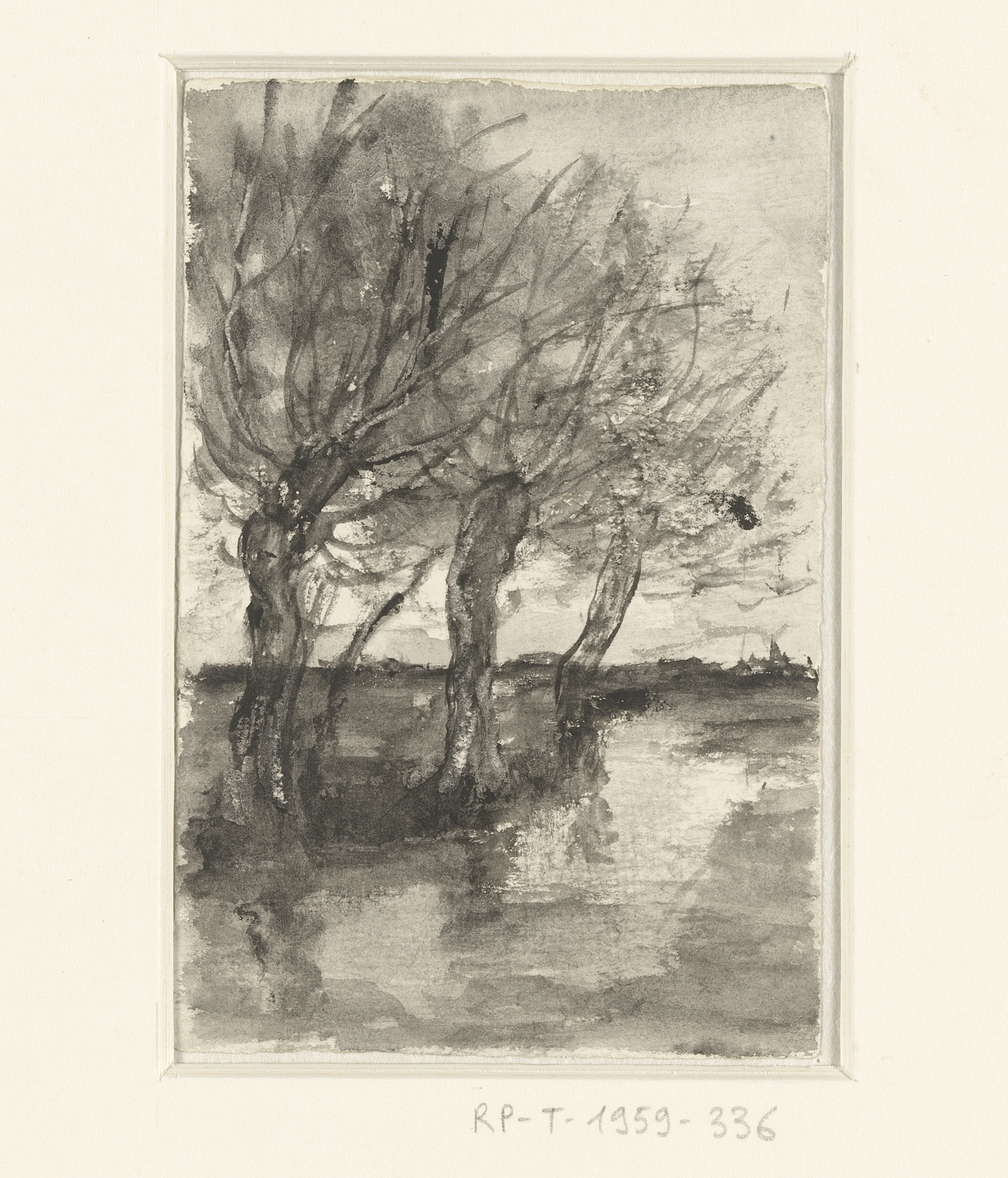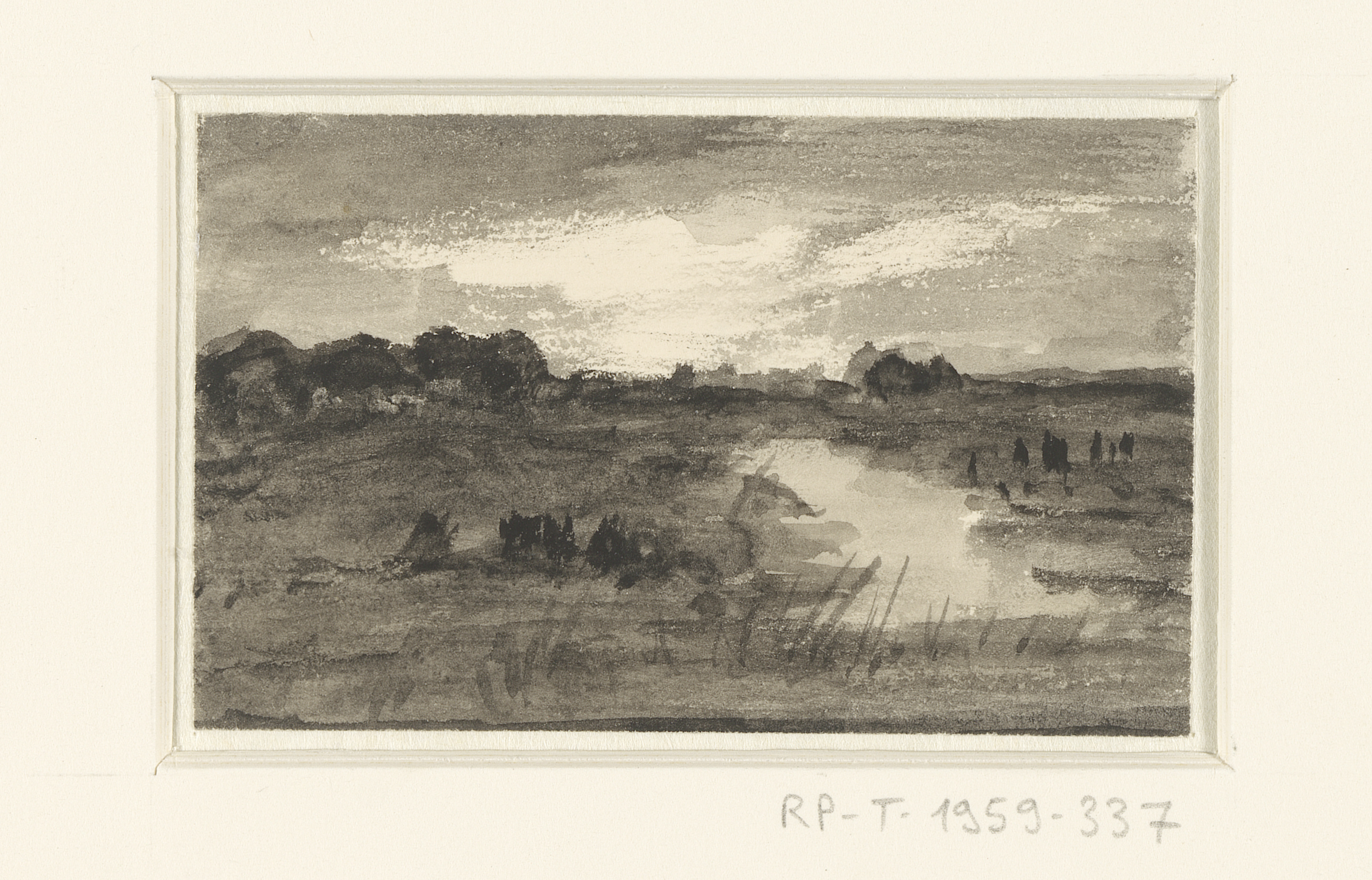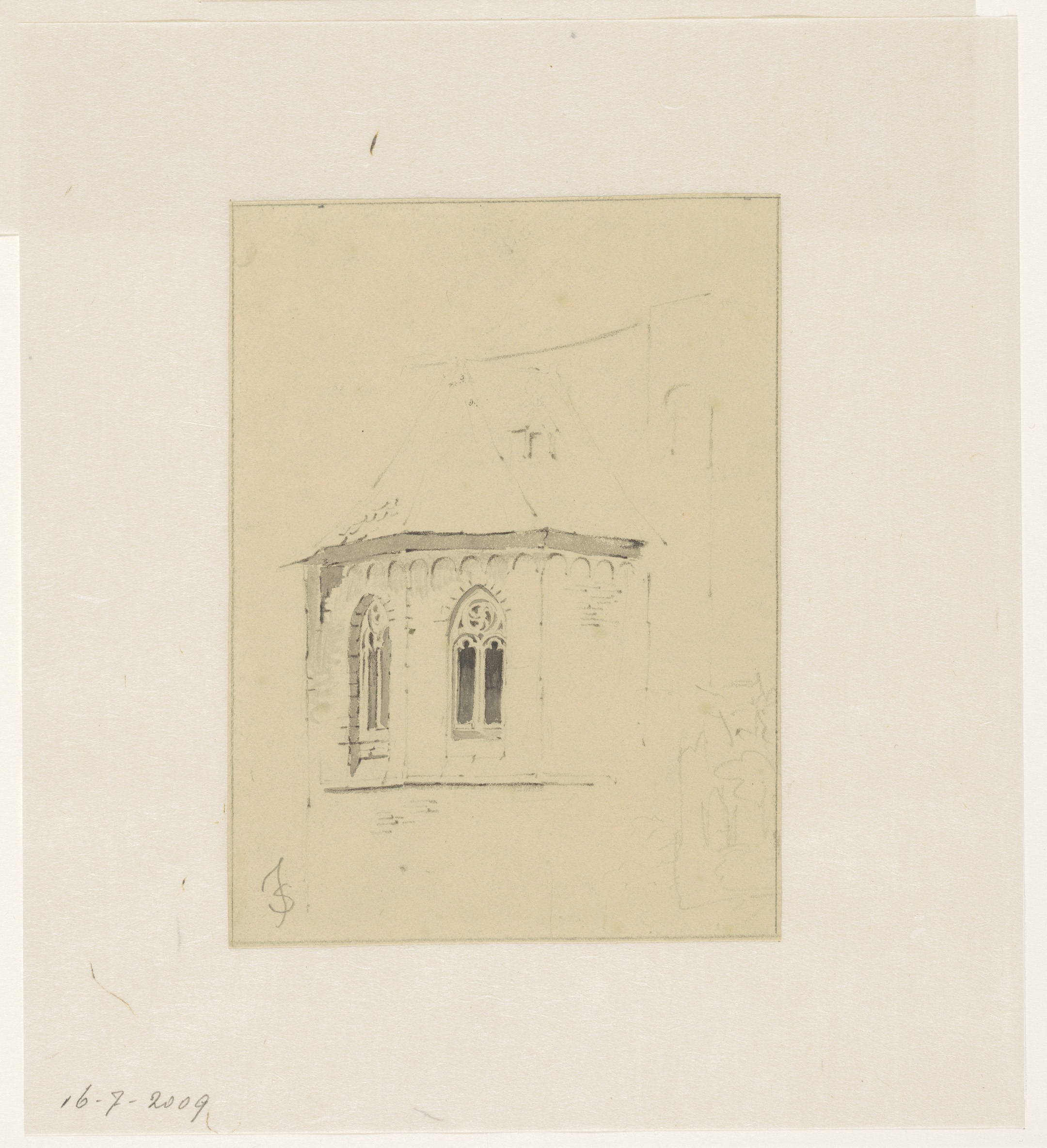 Boerenhuis met houten aanbouw, ervoor een kruiwagen ...