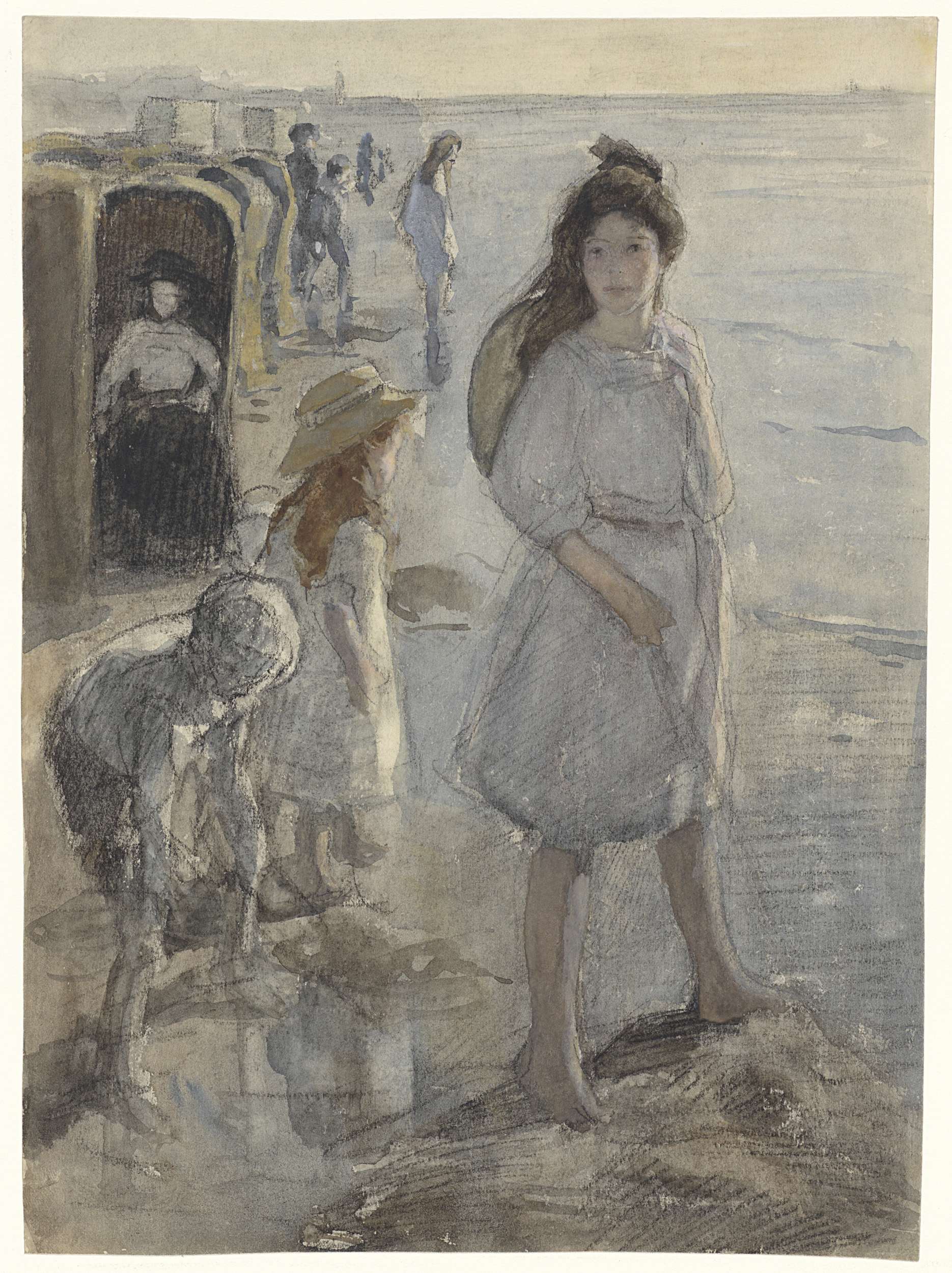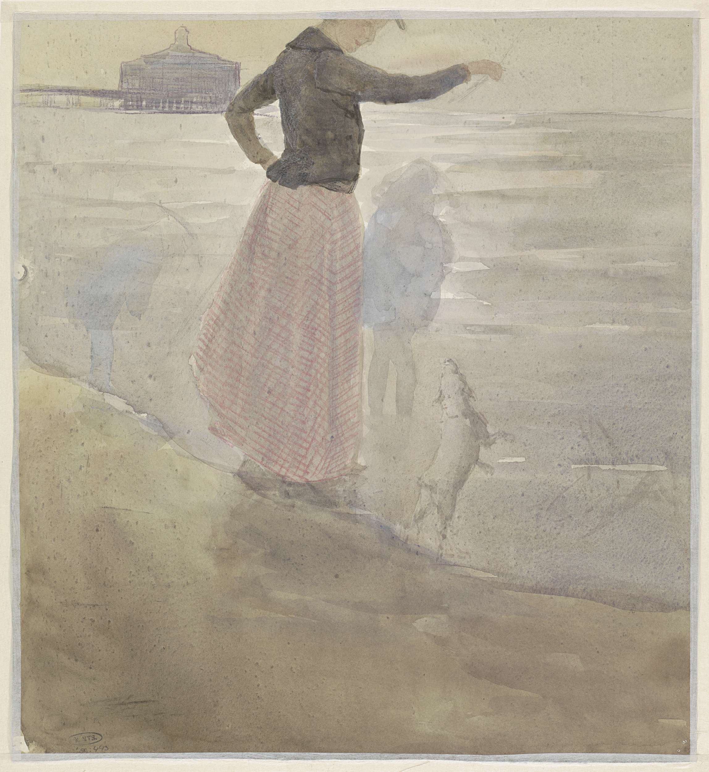 Gezicht langs de vloedlijn aan het Scheveningse stra...