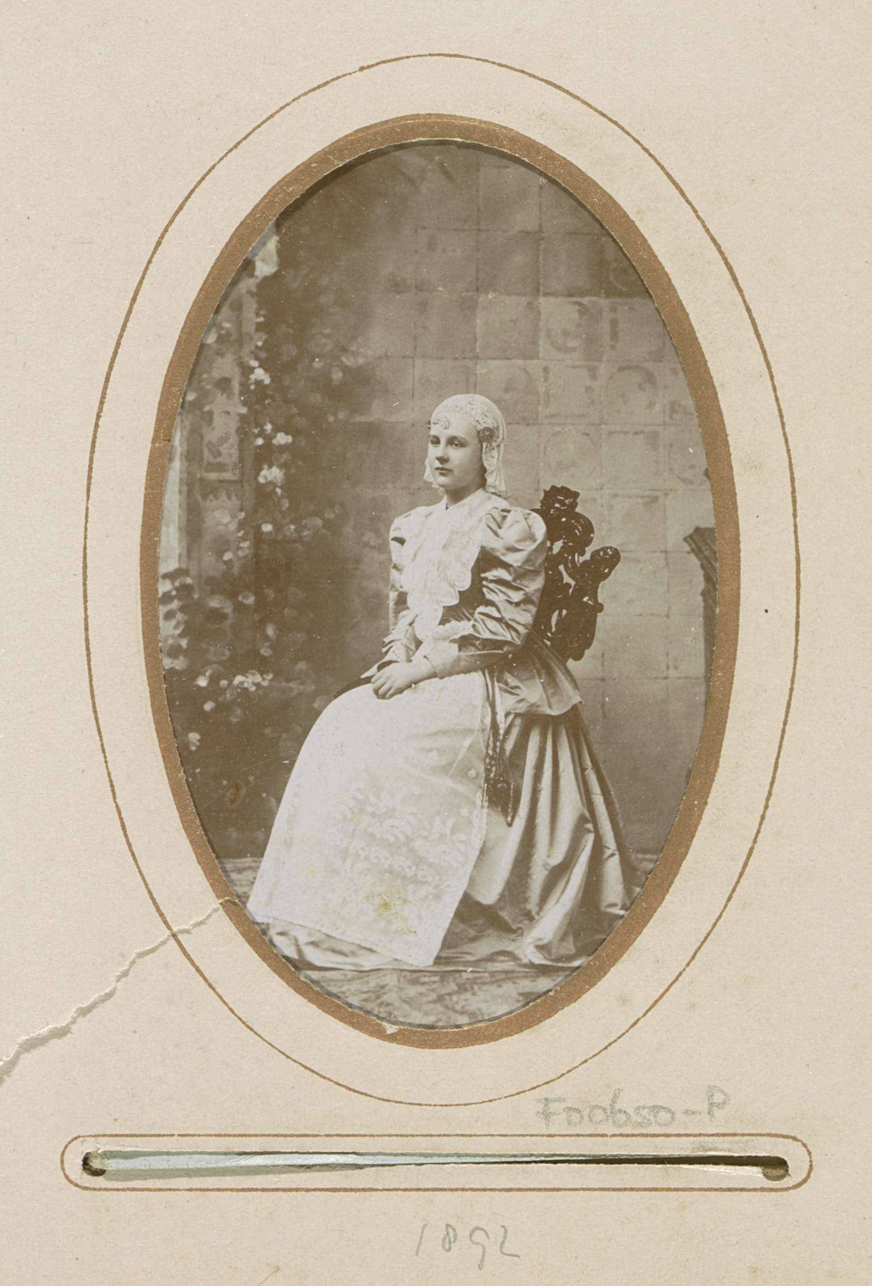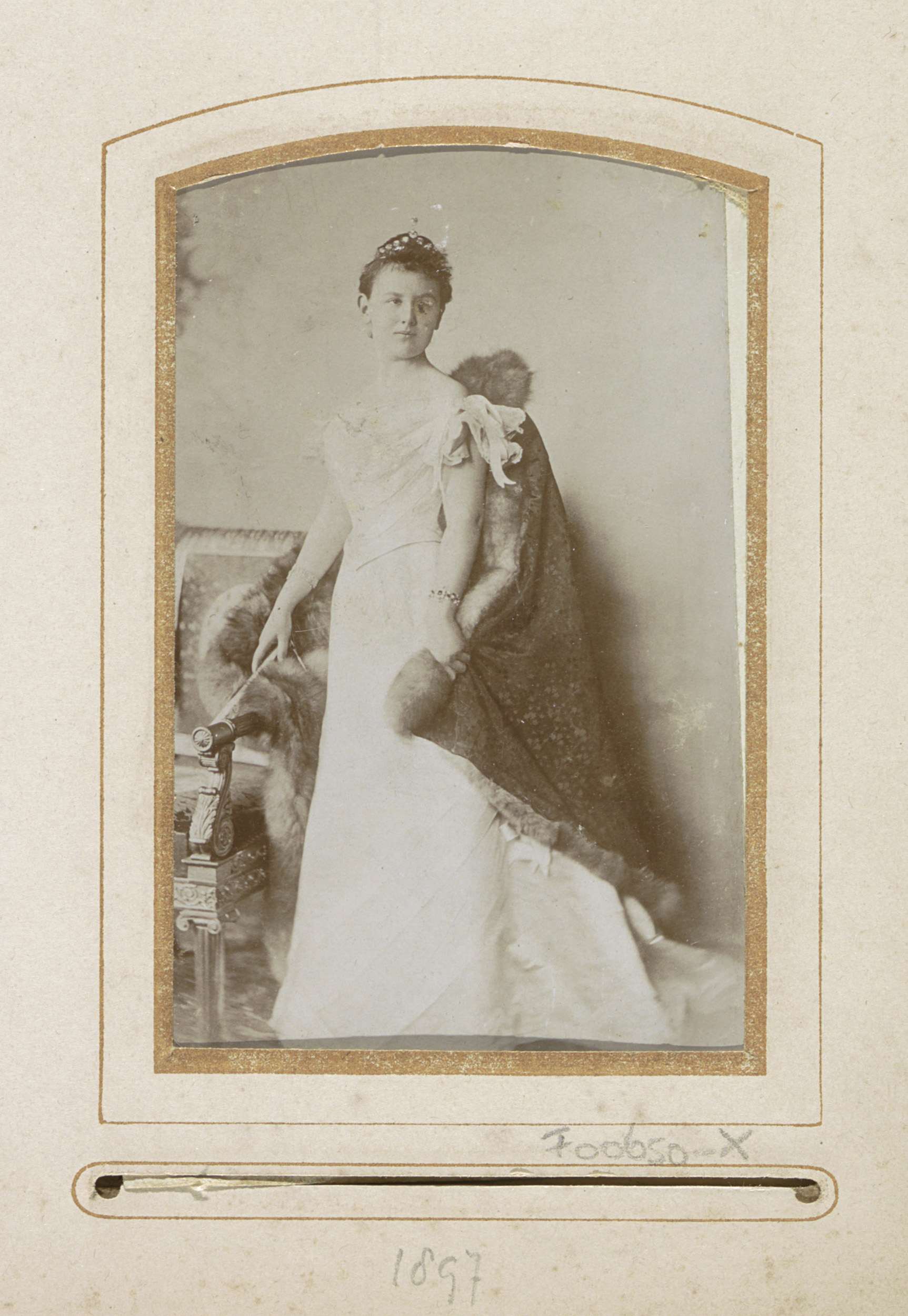 Portret van prinses Wilhelmina met bontmantel en dia...
