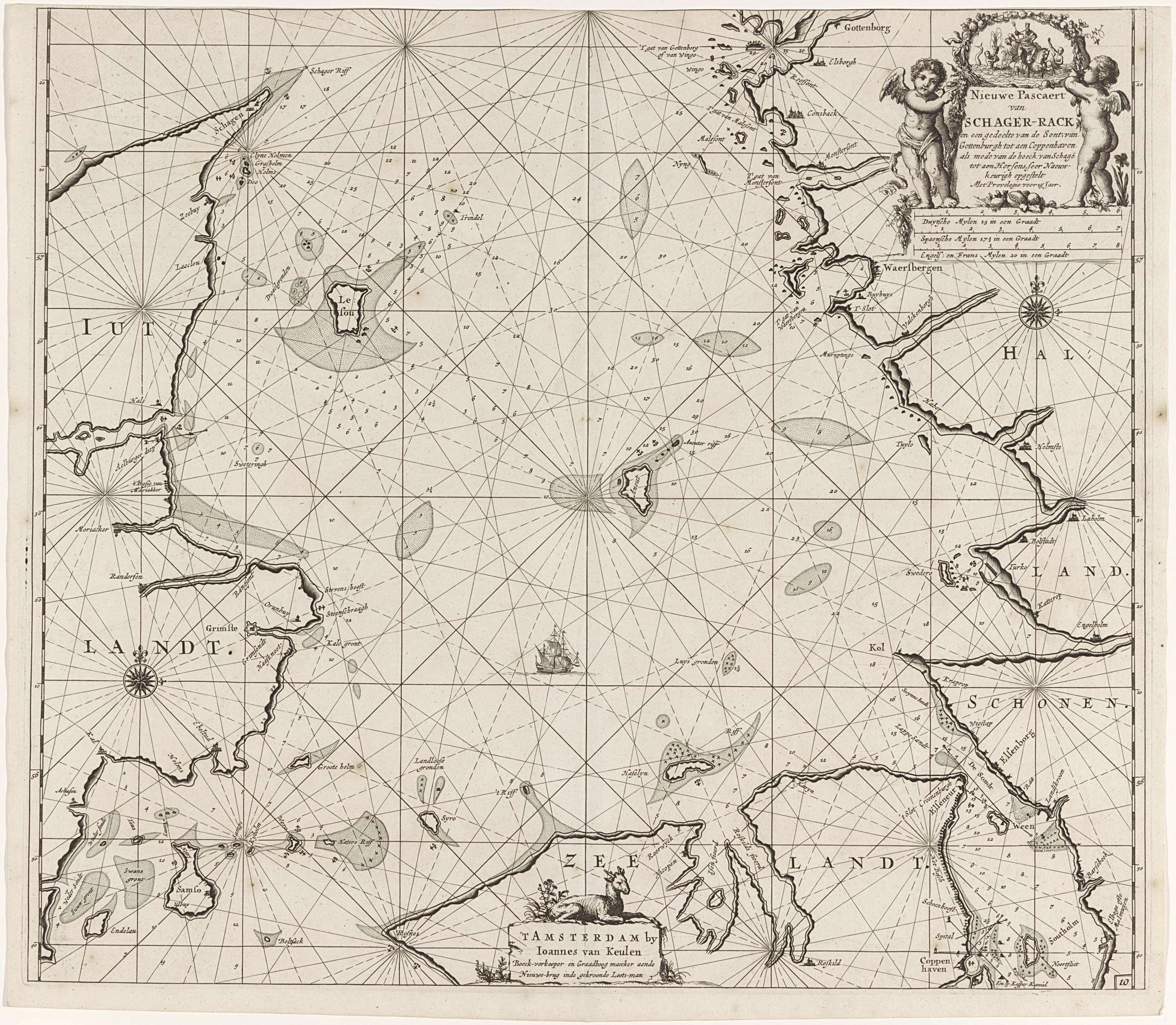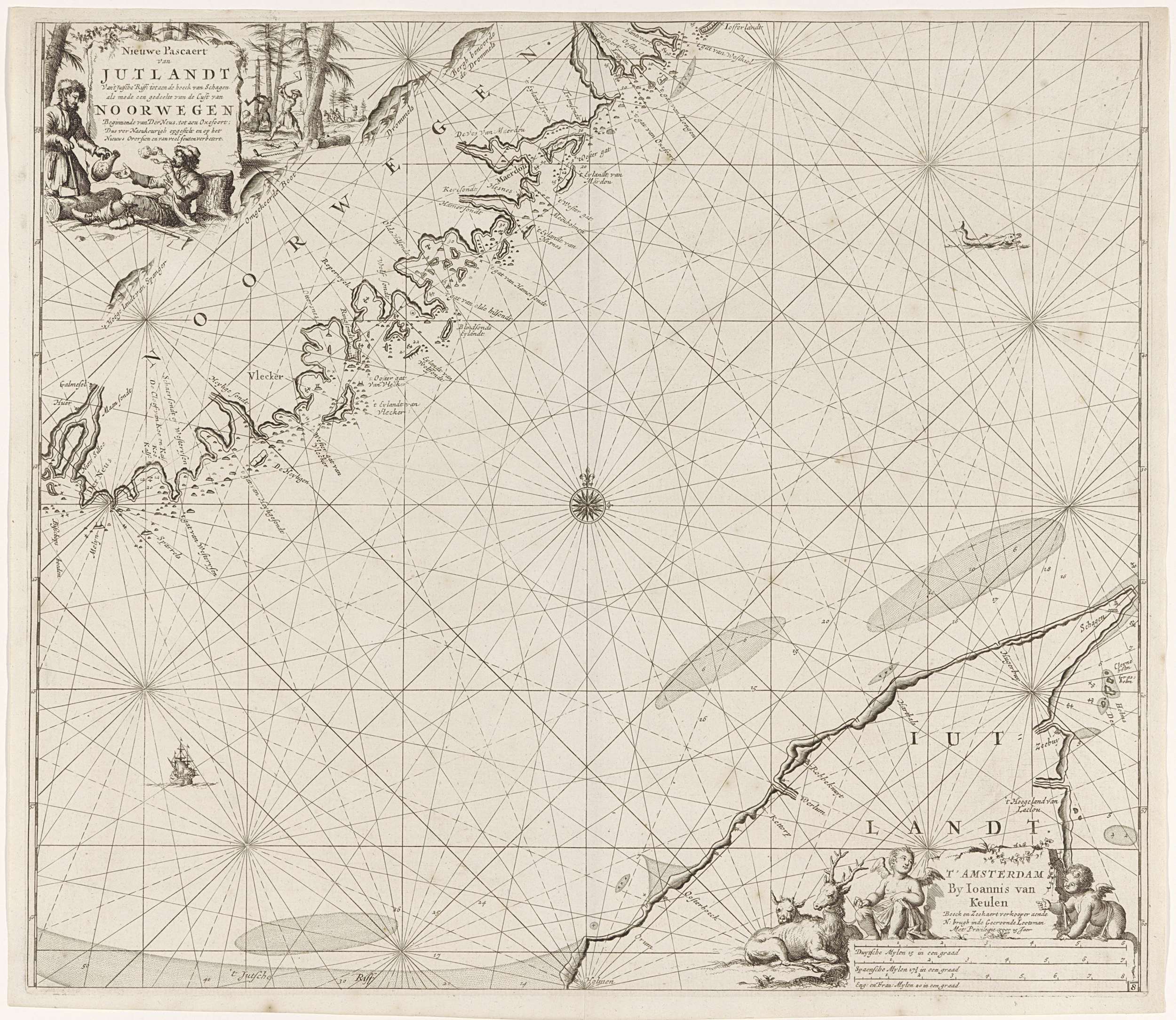 Paskaart van Denemarken met het Skagerrak en het Kat...