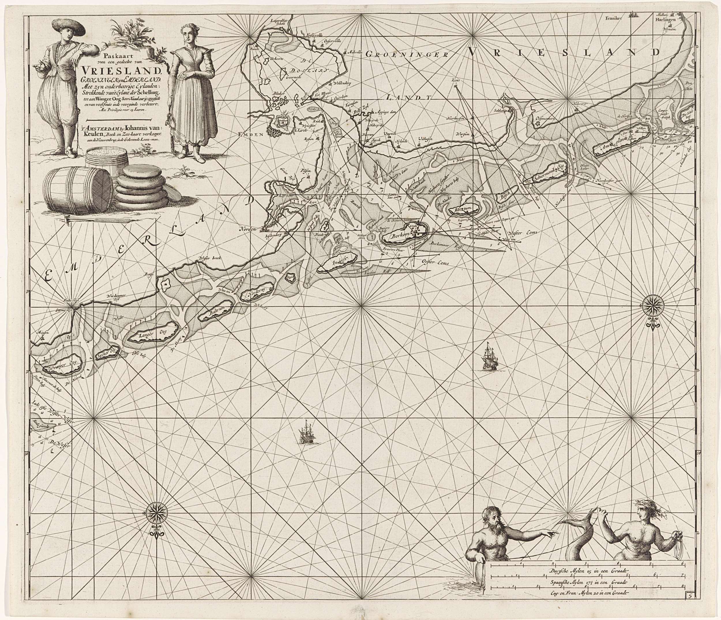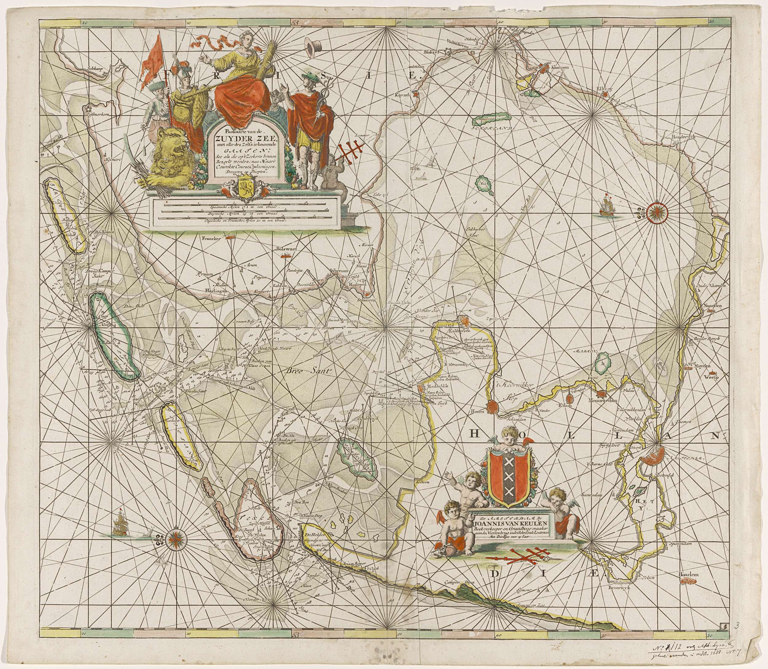 Paskaart van de Zuiderzee en de Waddenzee