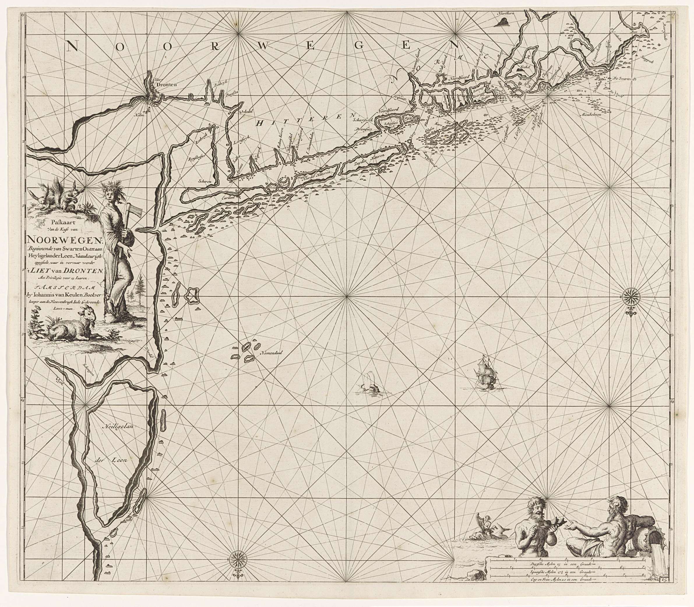 Paskaart van de kust van Noorwegen