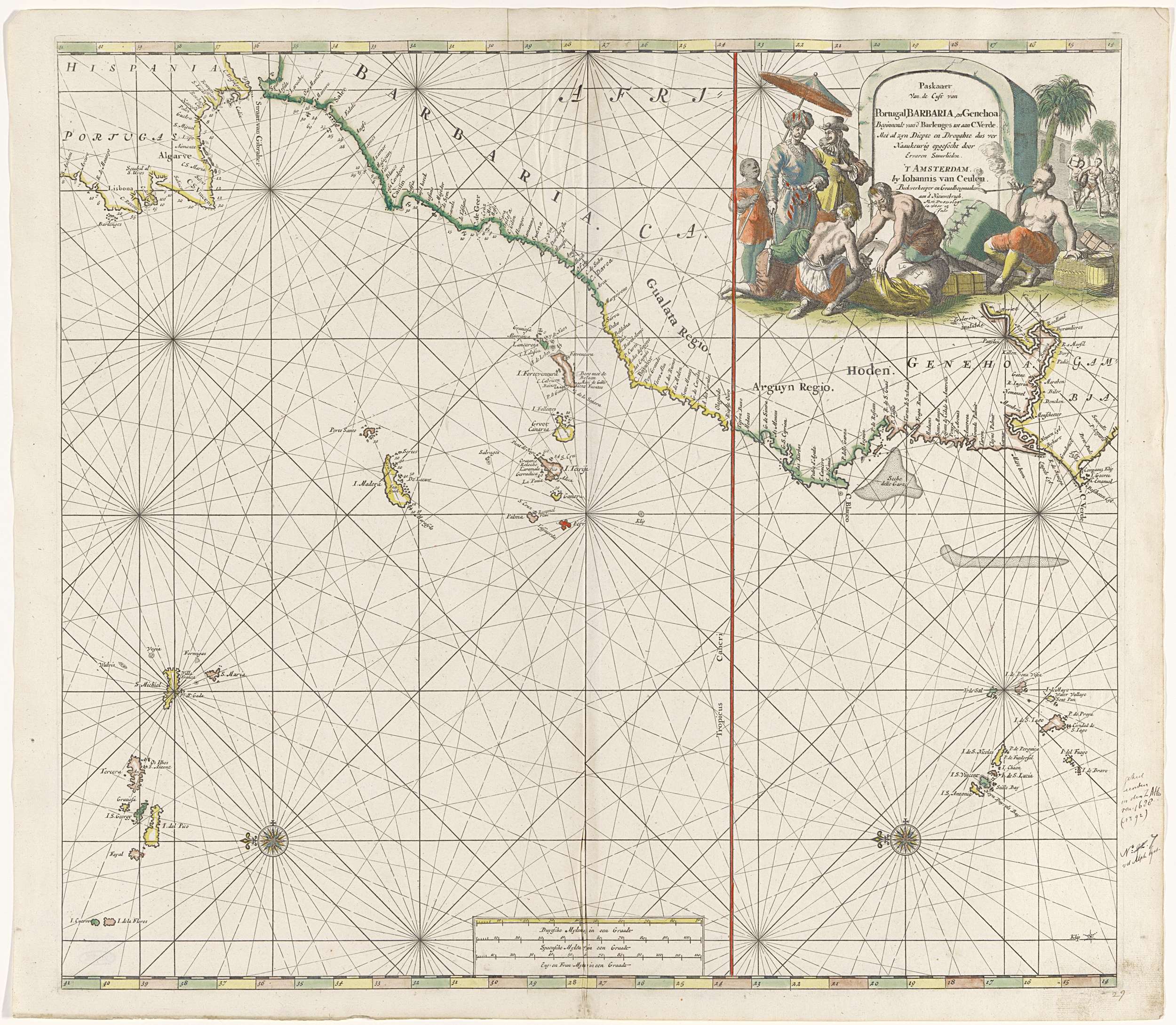 Paskaart van de kust van Portugal tot aan Gambia