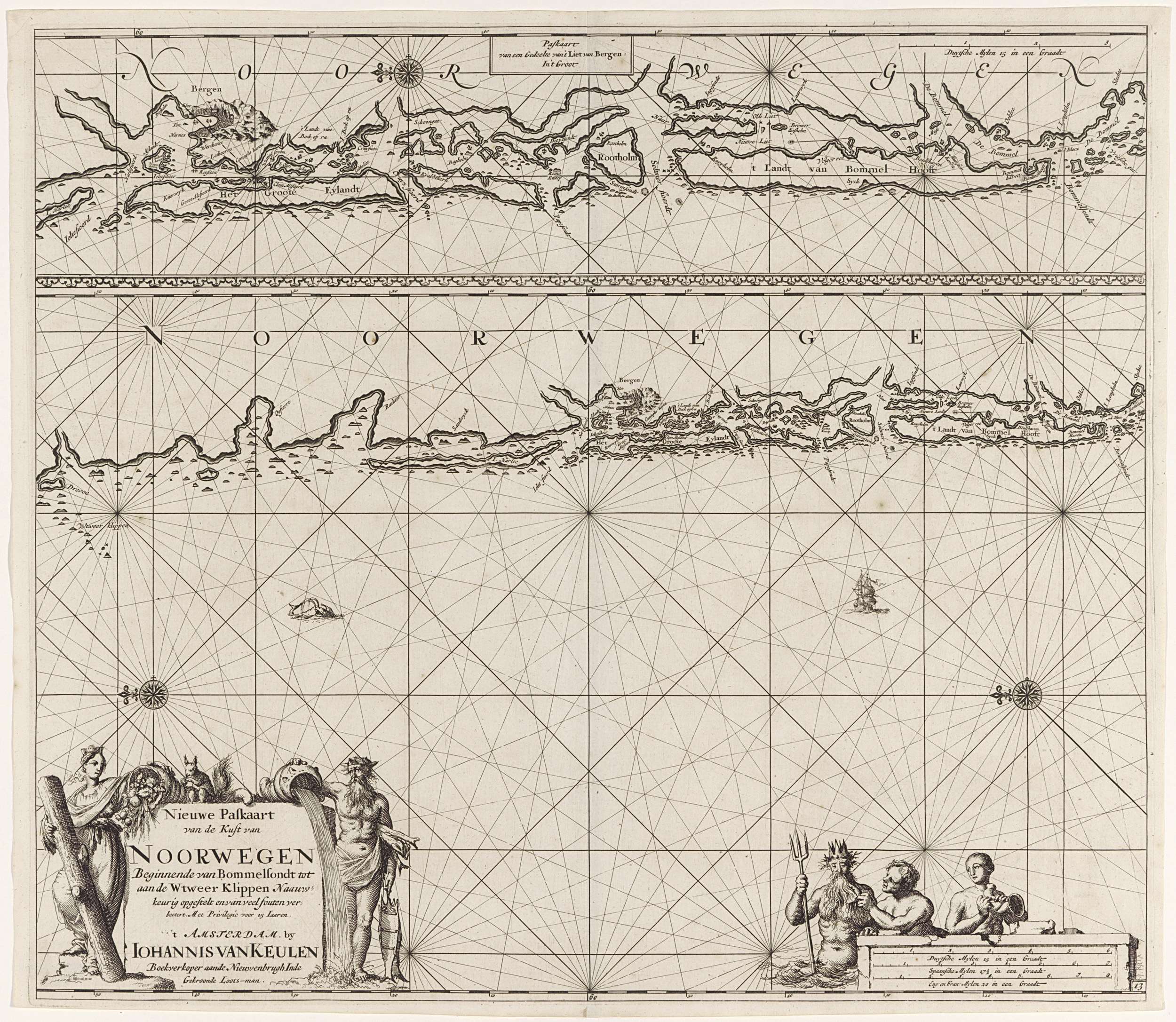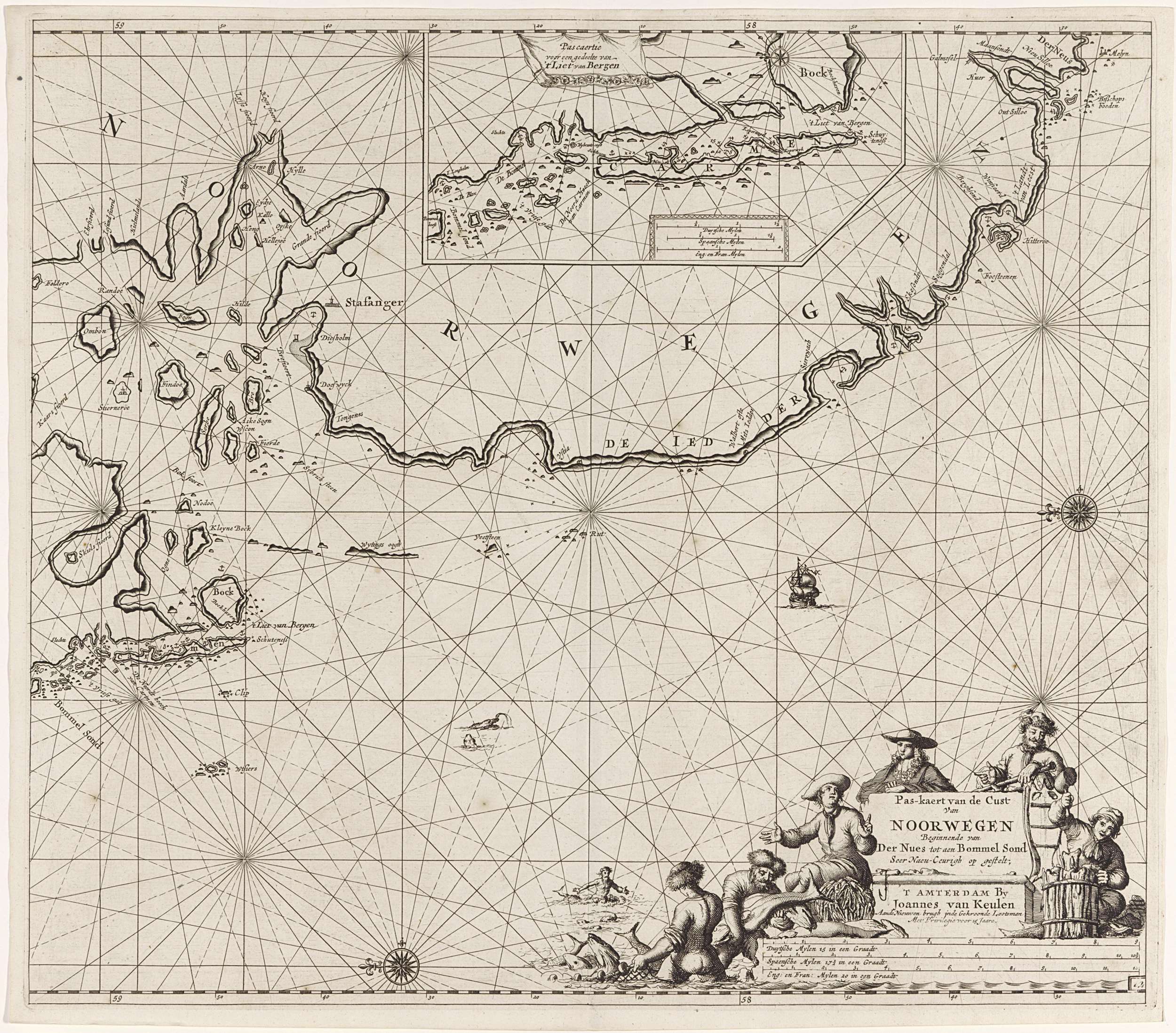 Paskaart van een gedeelte van de kust van Noorwegen