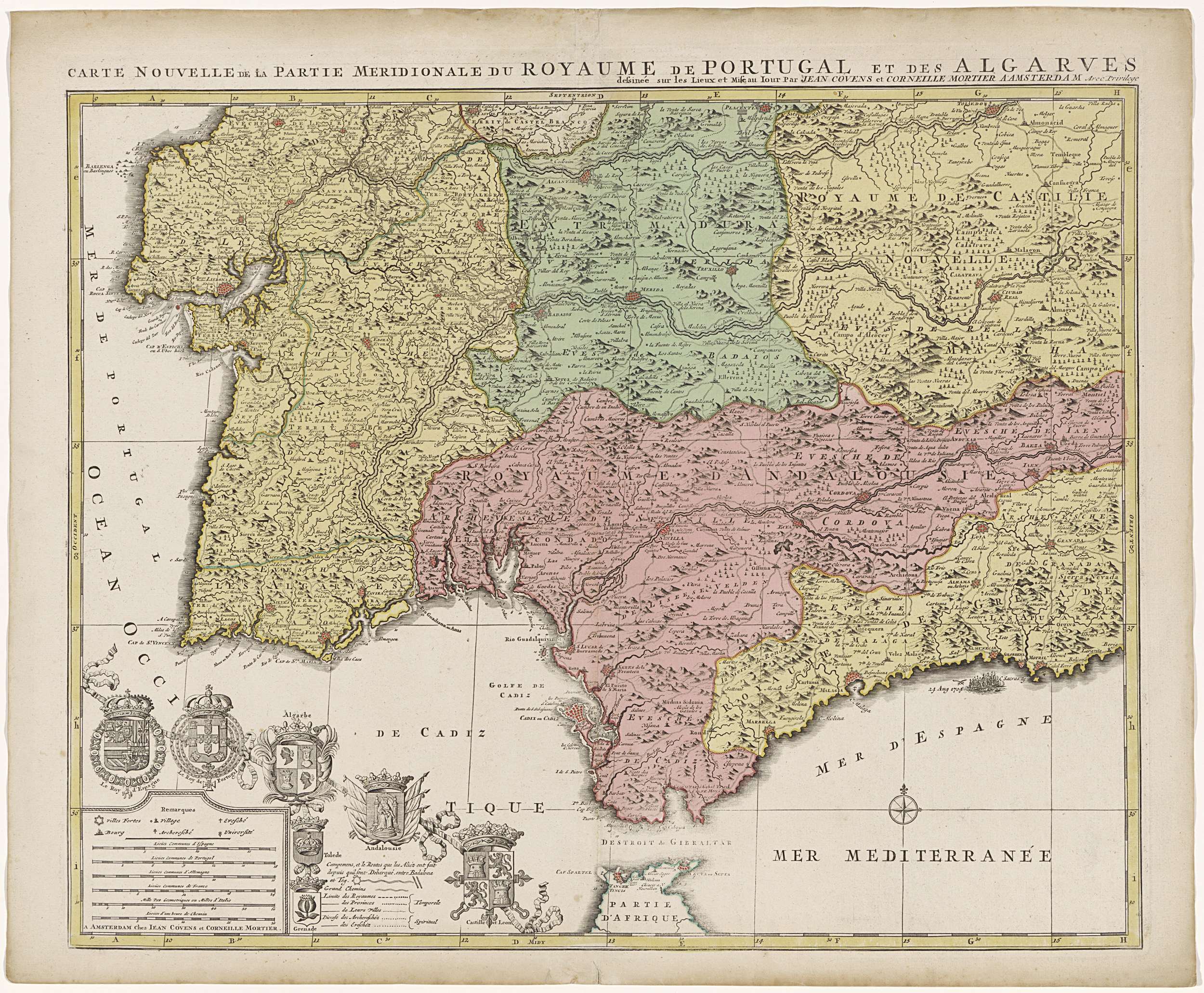 Kaart van Spanje en Portugal, ca. 1703