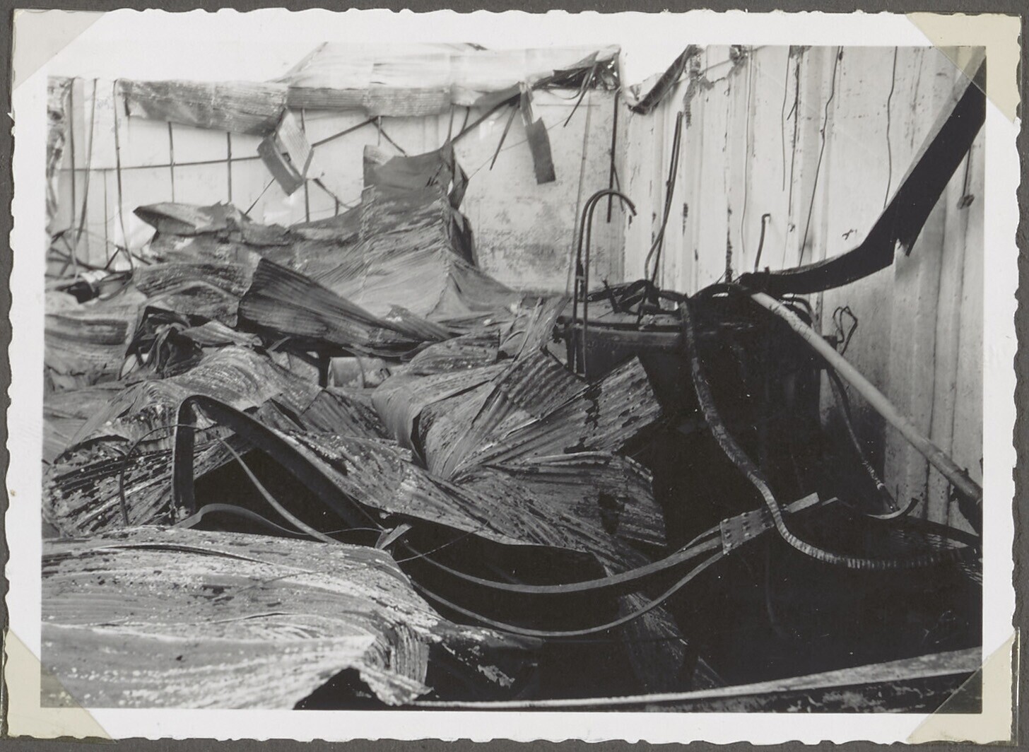 De spiritusfabriek 'Wates' tijdens de brand van 1937...